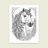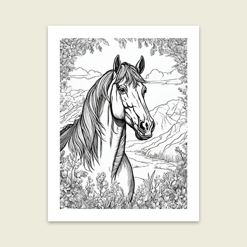 Within its pages, discover a collection of intricately designed illustrations showcasing horses in their natural habitat, intertwined with the organic elegance of branches and foliage. From majestic landscapes to close-up portraits, each page offers a unique canvas for your artistic expression.