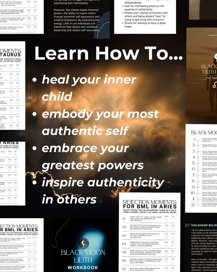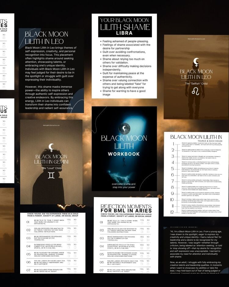 Unlock the secrets of your Black Moon Lilith with this comprehensive digital workbook designed to guide you on a journey of self-discovery and healing.