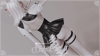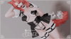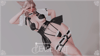 Frilly lingerie with straps, heart pasties, latex skirt and puffy short sleeves.