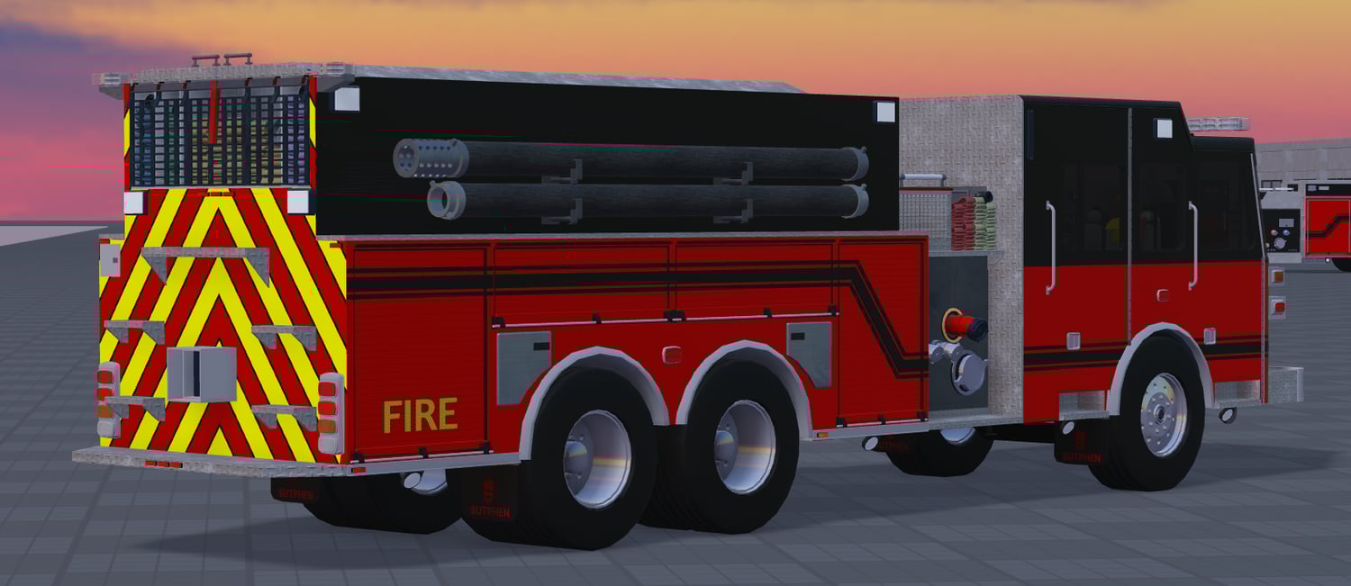 This is a Frontline 2020 Sutphen Fire Engine-Tanker. The model is completely handmade in roblox studio, and all the features work on the vehicle including the doors, compartments, ELS and chassis. The truck is on Firestone chassis and and does not have a UVMAP. Recoloring or striping will have to be done byhand.