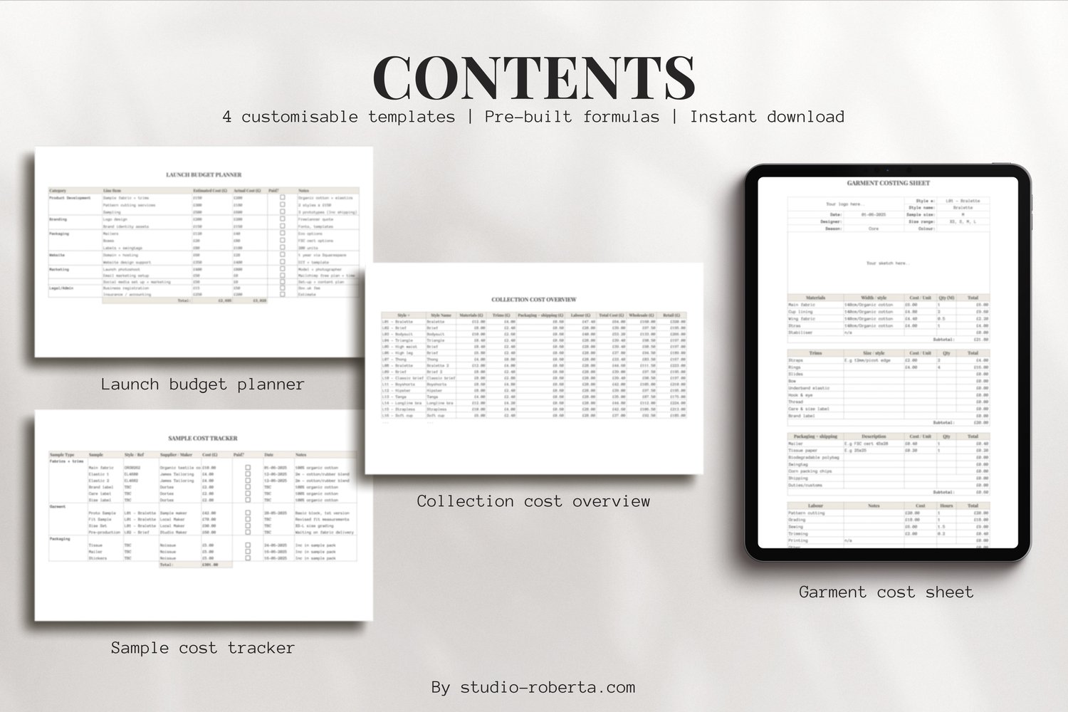 → Garment Costing Sheet – itemised garment costing by style
