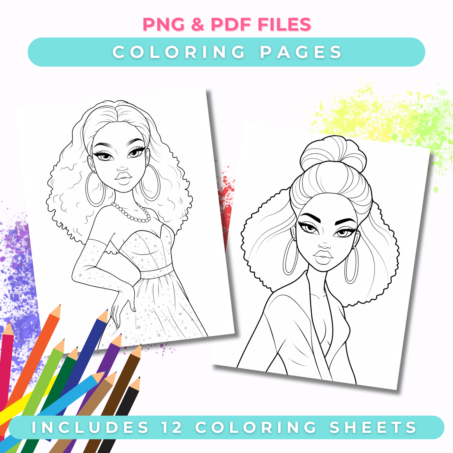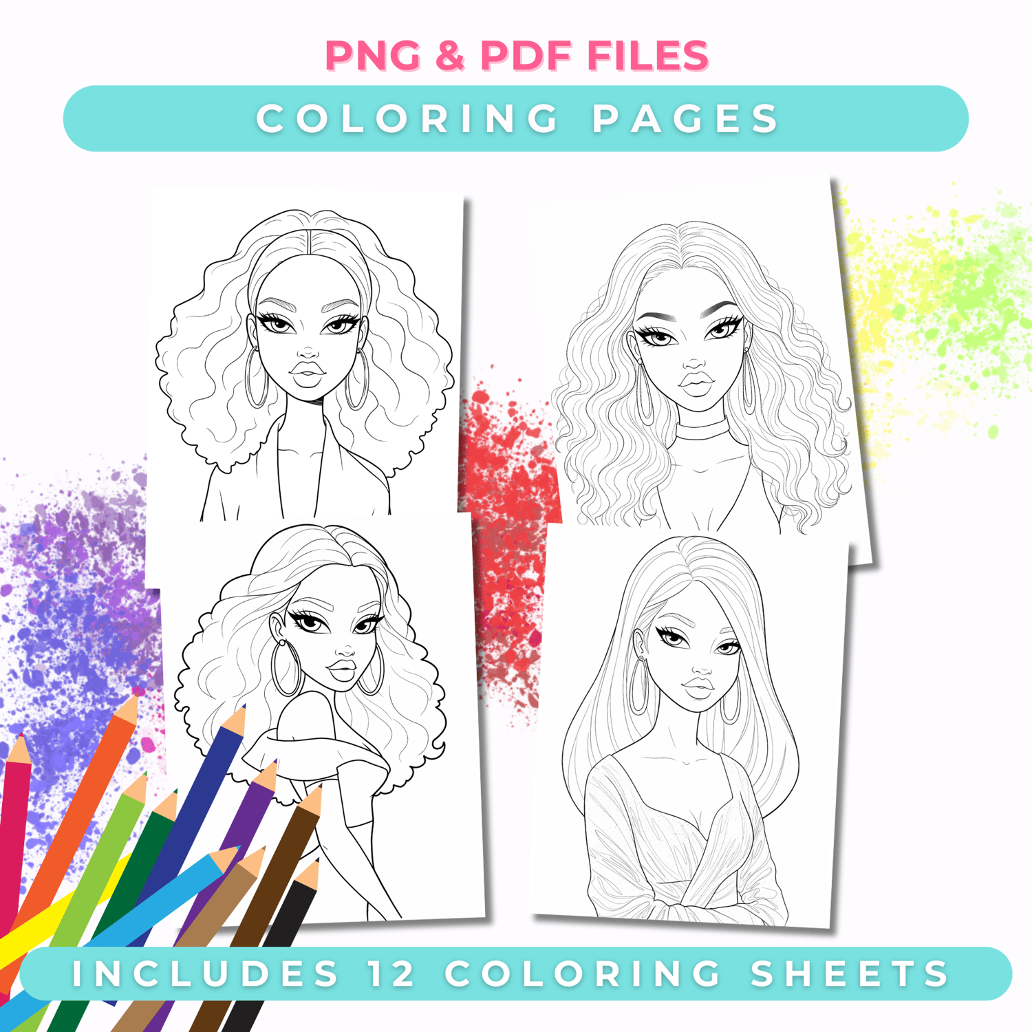 12 Glam Girl Coloring Pages - Digital Download | Printable Fashion Diva Coloring Sheets