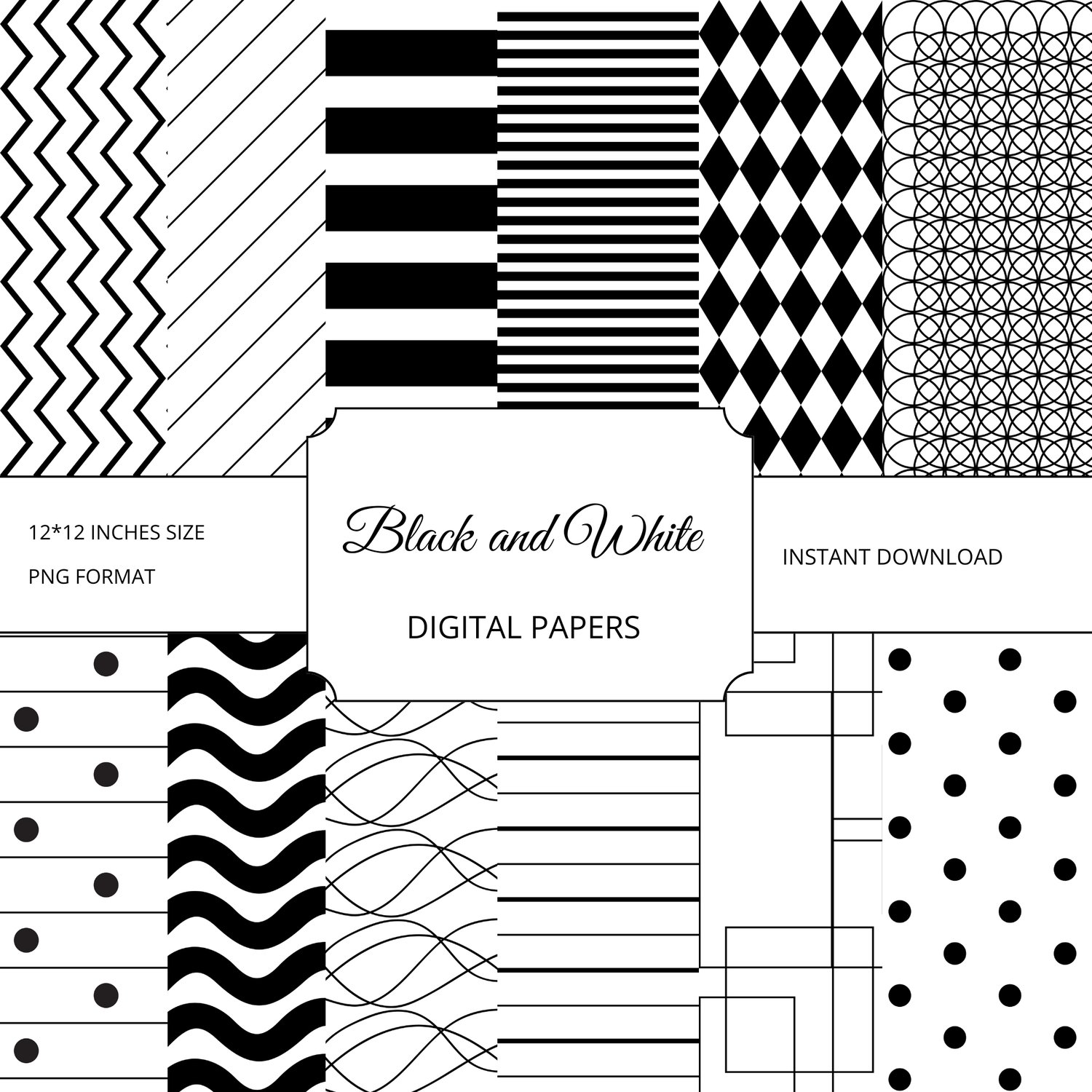 Black and White Digital Paper, 24 Pack, 12x12, PNG, Instant Digital Download