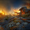 Ghost Town on Fire is a 4x6" printed digitally created artwork created and designed by BLACKF1R3.