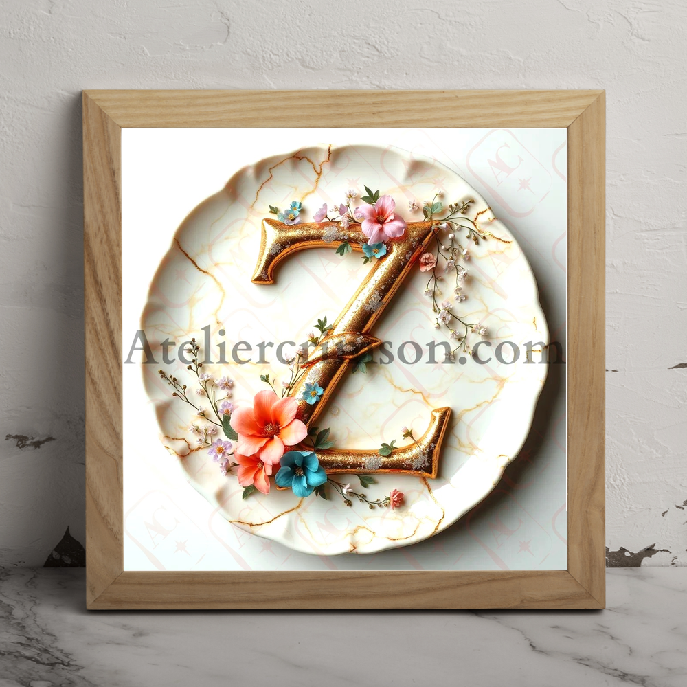 The letter Z flowers and procelaine .Download Now this high quality AI-generated image, perfect for adding a touch of tranquility and creativity to any space.