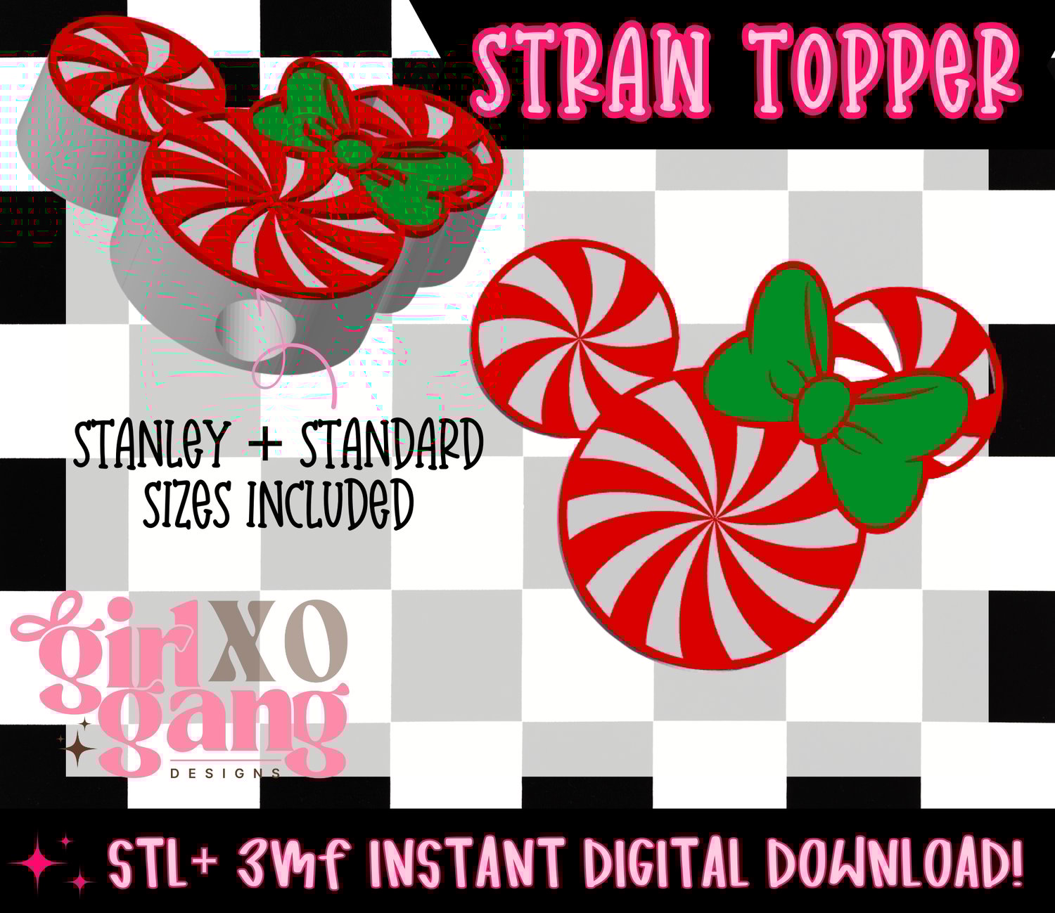 peppermint mouse straw topper STL + 3mf File, standard and stan straw sizes included!