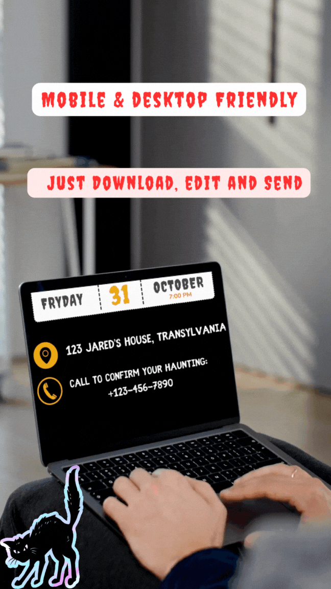 Hosting a last-minute bash? This spooky-chic animated invitation is perfect for Halloween parties, costume nights, or haunted hangouts. No design skills needed β just download, edit if needed, and send it off!