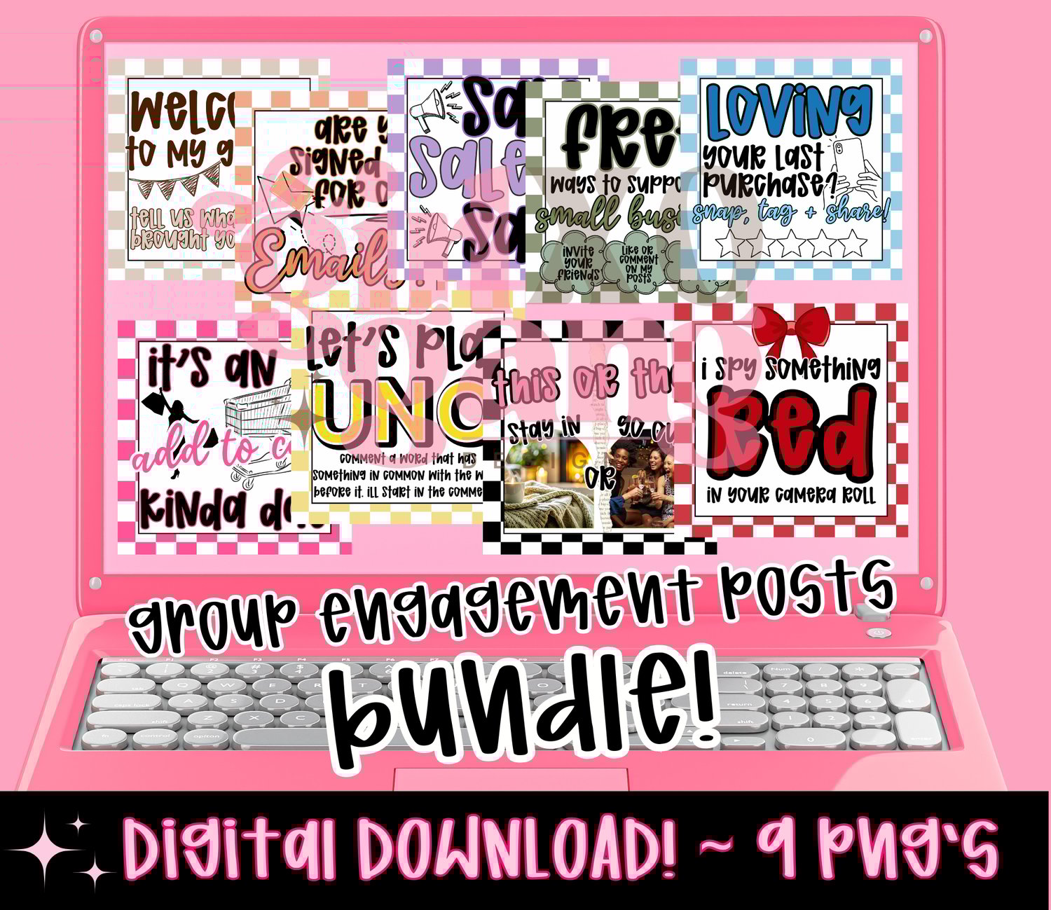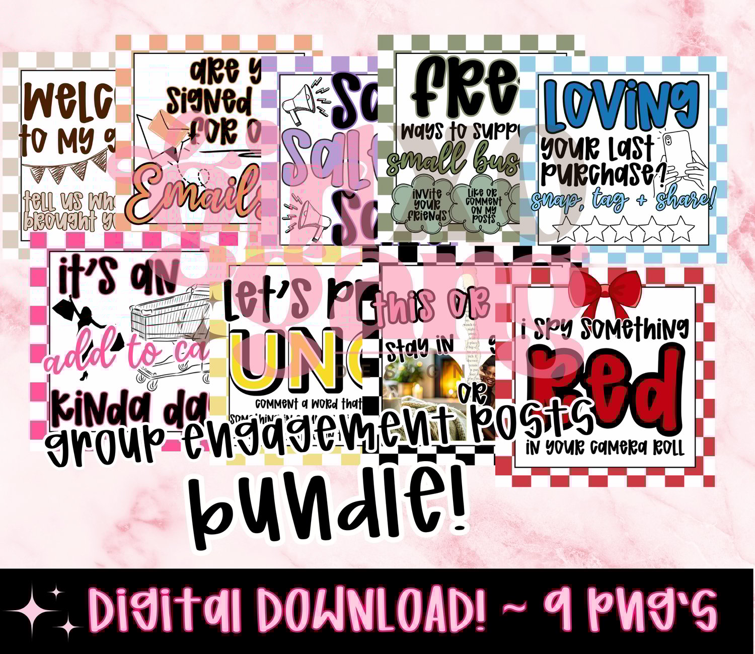 Checkered group engagement posts - 9 PNG posts included! Pink edgy aesthetic