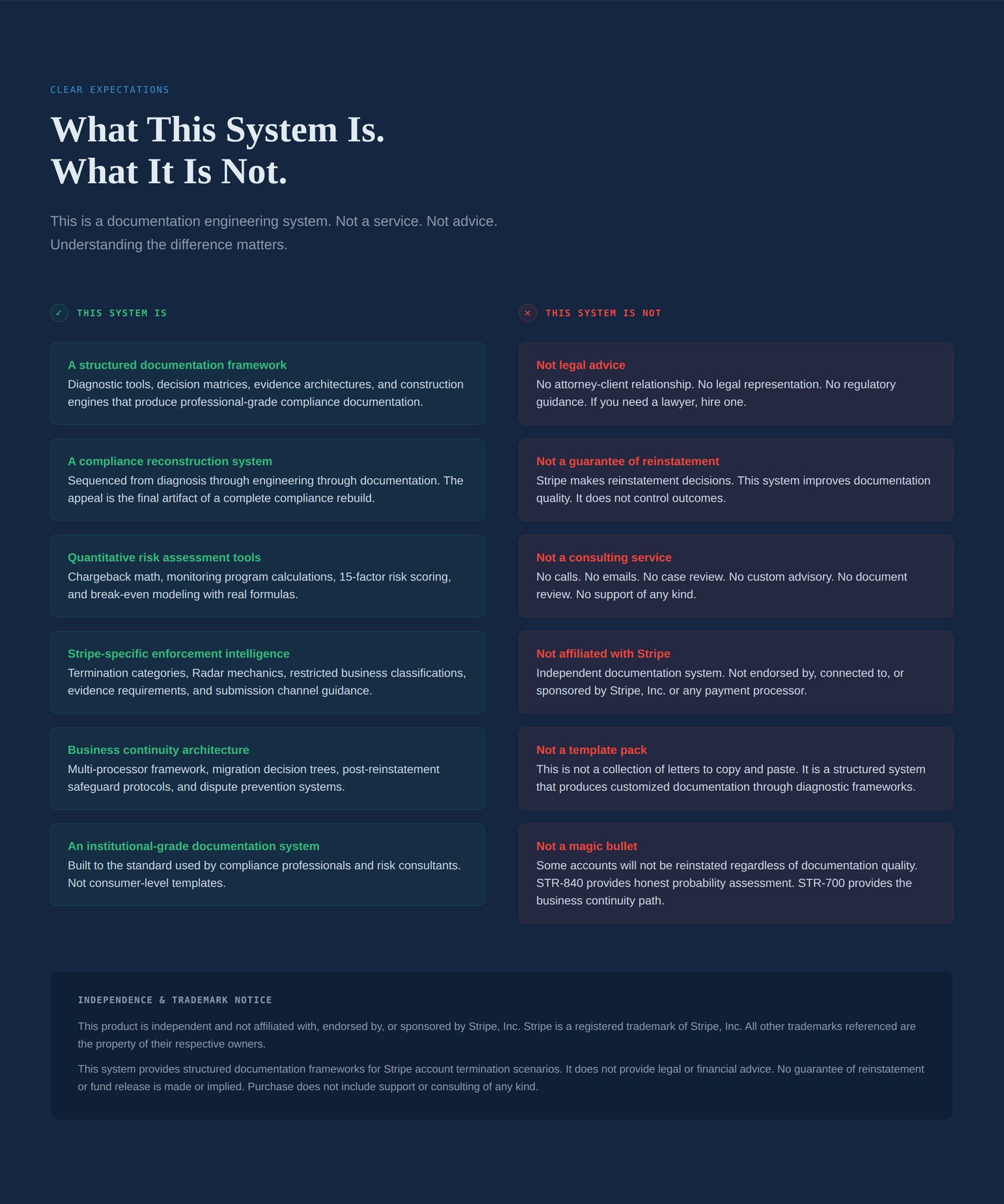 Stripe evaluates documentation structure — not emotional narratives.