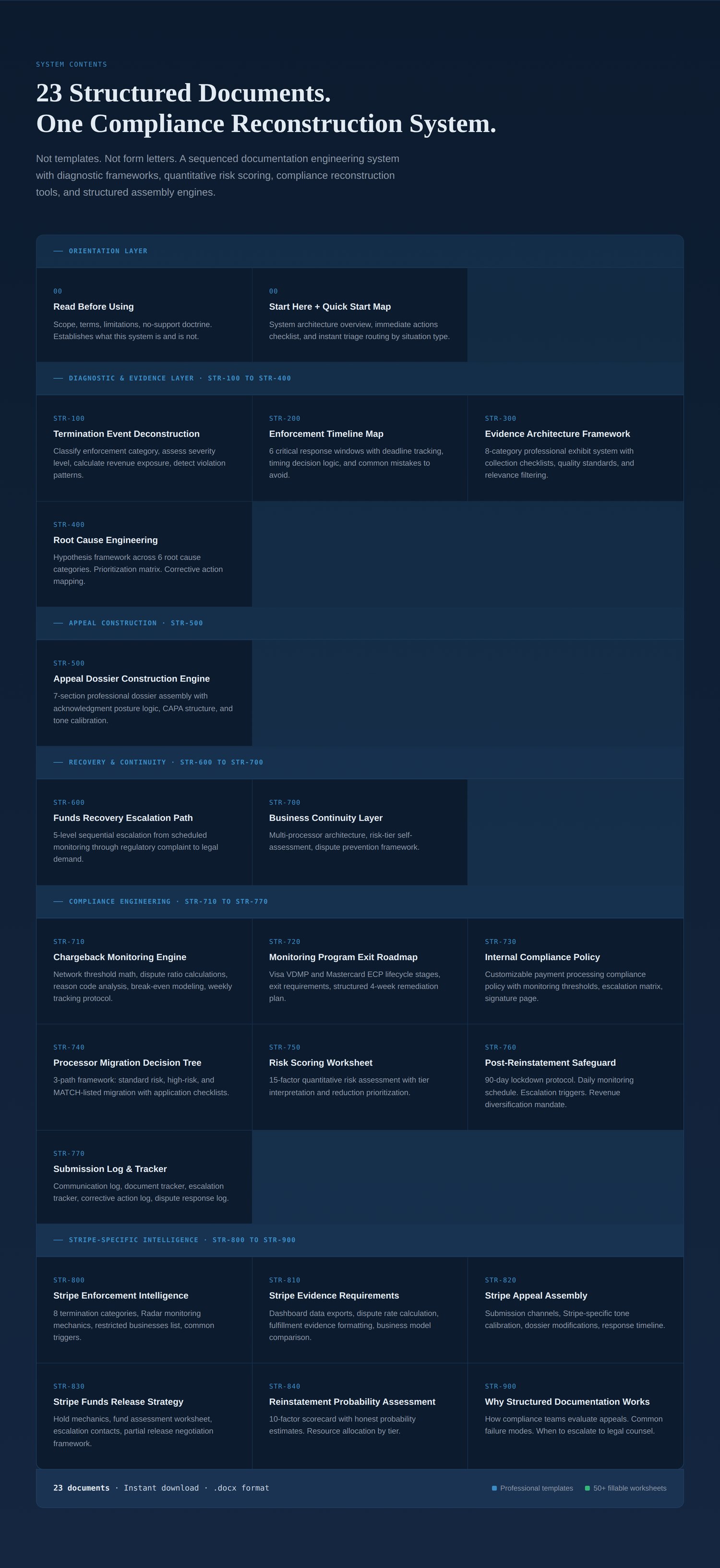 This system gives you the documentation architecture used to rebuild internal compliance posture and submit a structured reinstatement request.