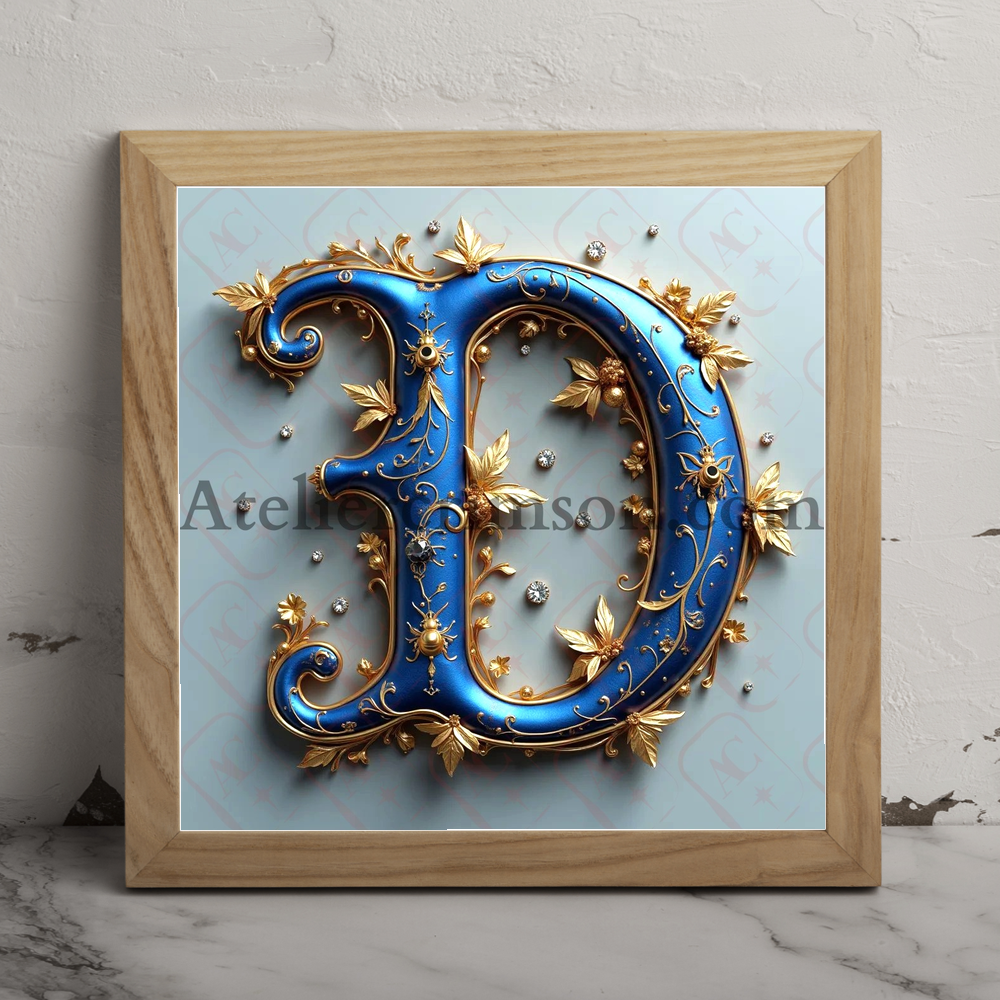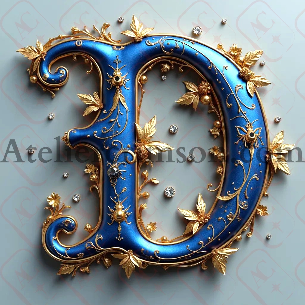 The letter D royal blue bees Download Now this high quality AI-generated image, perfect for adding a touch of tranquility and creativity to any space.