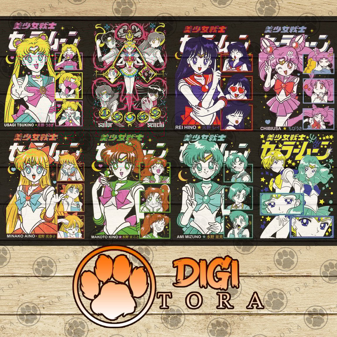Bring the magic of the Sailor Guardians to your creations with this exclusive Sailor Moon digital pack! Includes 8 premium PNG designs, perfect for t-shirts, stickers, sublimation, DTF, DTG, and more.