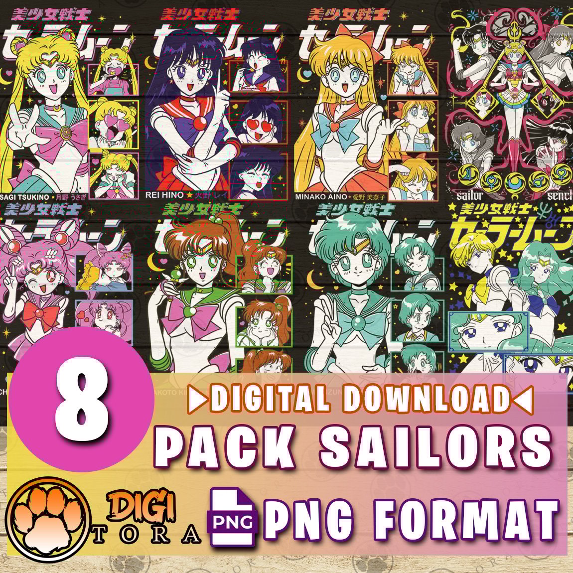 Pack Sailor Moon: 8 High-Resolution PNG Designs | Premium Backgroundless Images for DTF, DTG, Sublimation, and More