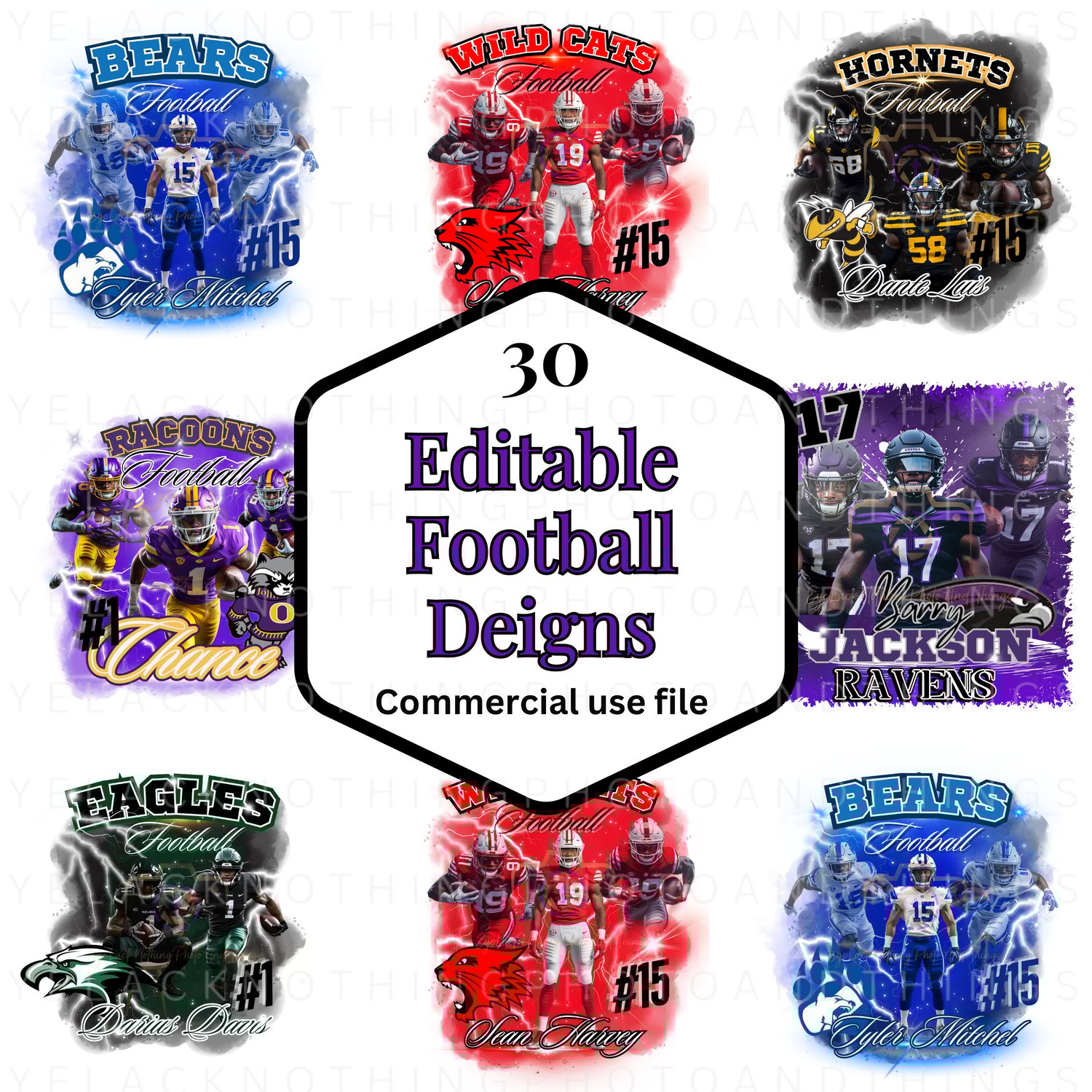Editable football templates designed for busy crafters, sports moms, photographers, and side hustlers who want to cash in on the season without wasting time.