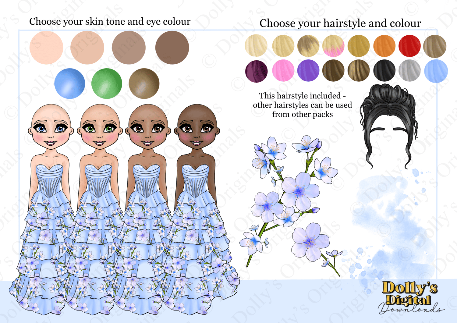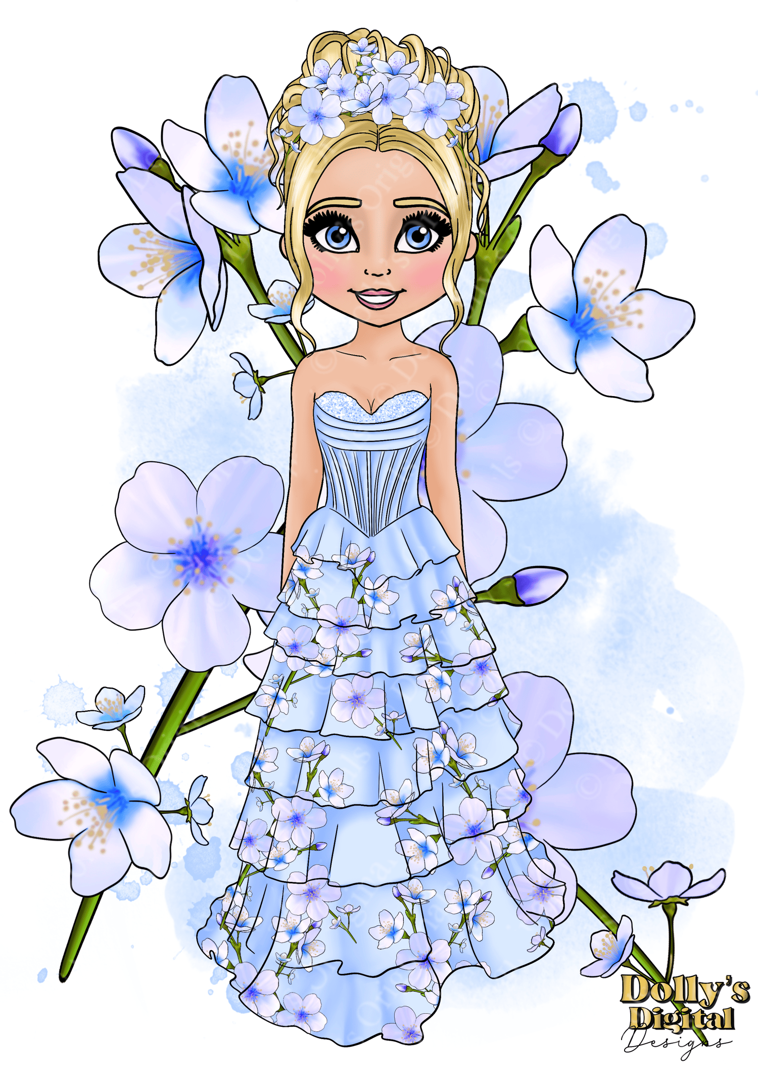 Instant digital download of our Blue Blossoms Dolly Character Bundle PNG (35 PNG’s)