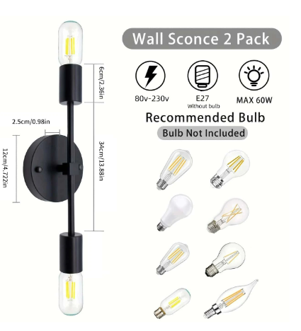 The 1pc Gold & Black Dual Head Wall Lamp is a modern and luxurious lighting fixture designed for enhancing spaces like hallways, dressing rooms, or closets. Typically featuring a sleek combination of gold and black finishes, this wall lamp adds a touch of elegance to the decor. With dual heads, it provides balanced illumination, making it suitable for applications such as mirror front lighting. The lamp operates within a voltage range of 80V to 230V, offering compatibility with various electrical systems. It accommodates an E27 bulb (bulb not included), allowing you to customize the lighting intensity and color temperature based on your preferences. The design and color scheme make it a sophisticated addition to contemporary interiors.