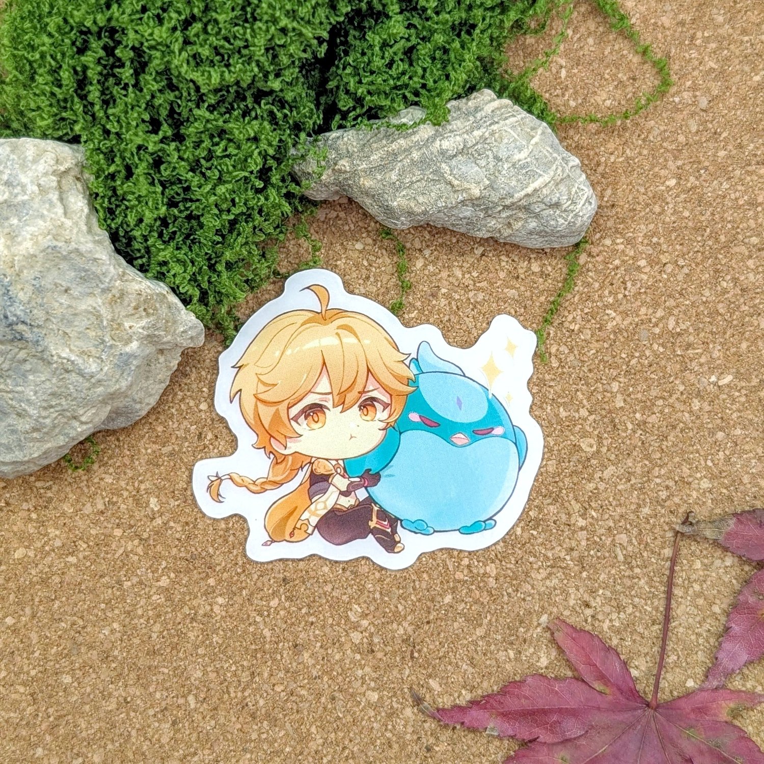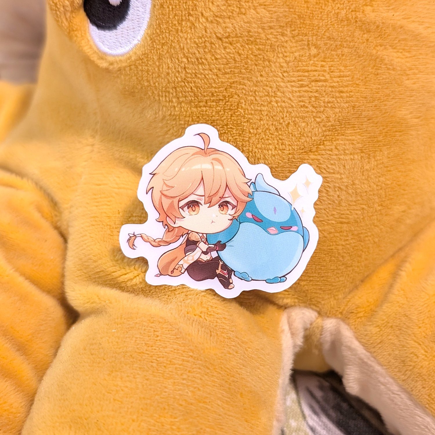 Aether looks straight at you with a pout - he’s clearly not sharing his beloved Xiao bird plush. But he is incredibly adorable doing so, don't you agree?