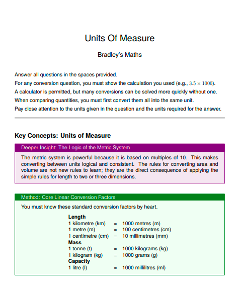 - Key Concepts: The opening section of the worksheet tells you what the worksheet contains and how to answer the questions with fully worked methods, deeper insights, pro-tips and how to avoid the typical student errors.