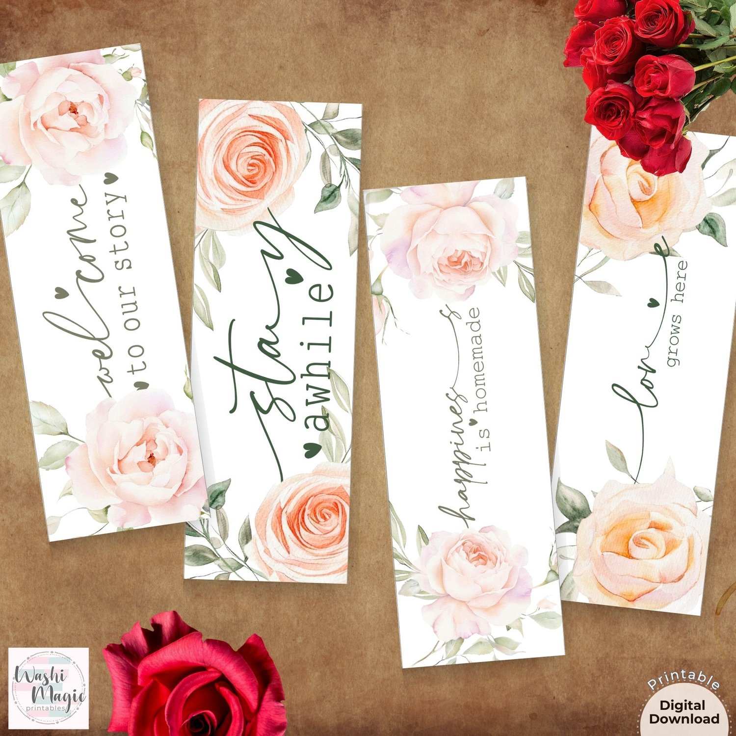 Add a touch of romance to your reading with the beautiful pastel roses bookmarks. Each bookmark is adorned with heartfelt quotes. Perfect for gifting or personal use, these romantic soft pink bookmarks are designed to inspire and make every reading moment special.