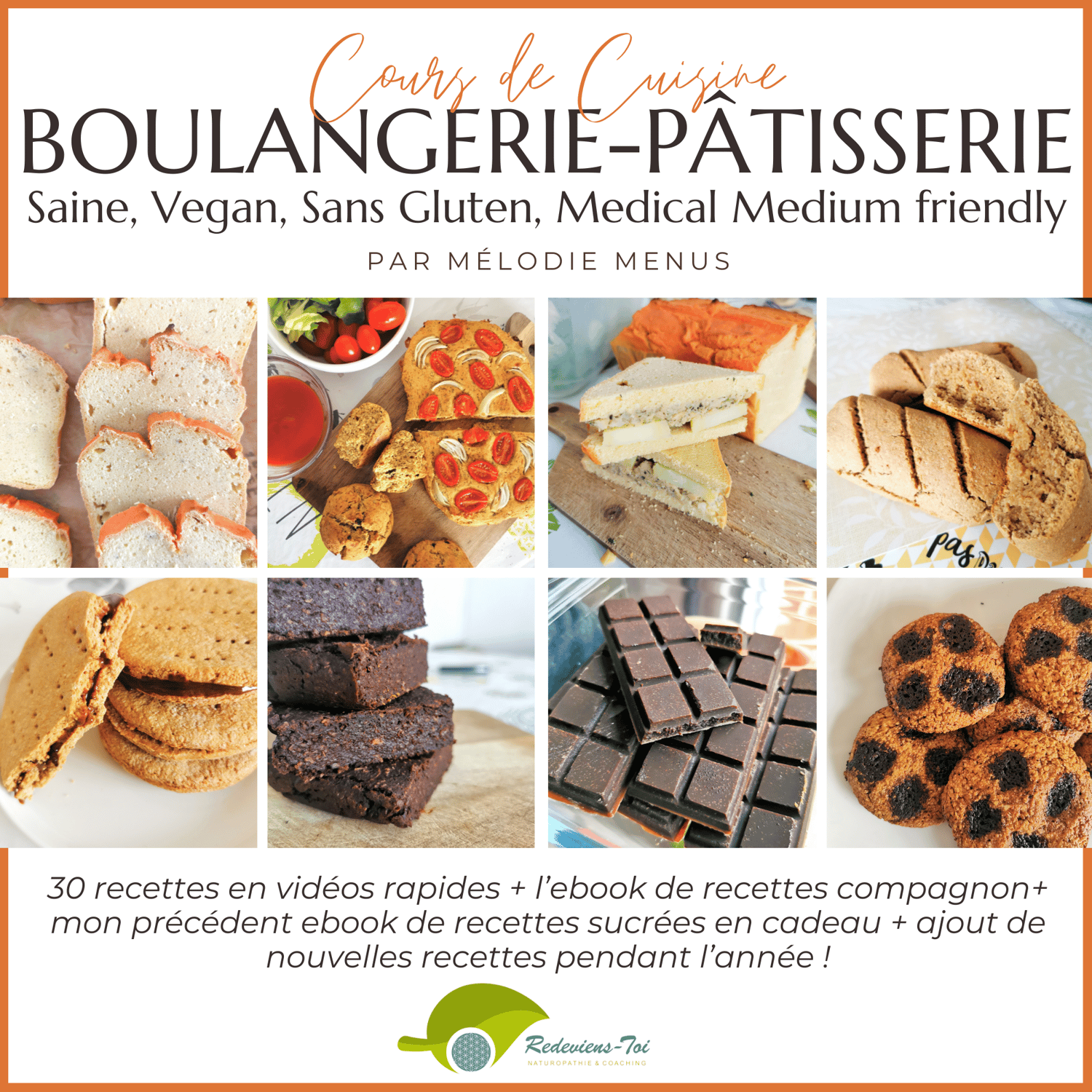 Ce cours, c'est de la boulangerie : petits pains, pains au lait, foccacia, sandwich, biscottes, bretzel, crackers, Naans ainsi que de la pâtisserie : brownie, muffins, tarte, flan pâtissier, biscuit, ainsi que des ingrédients utiles comme la margarine, le faux-mage et ce que j'appelle le fochoco qui est du faux chocolat (le cacao n'étant pas un ingrédient sain cf Anthony Wiliam).