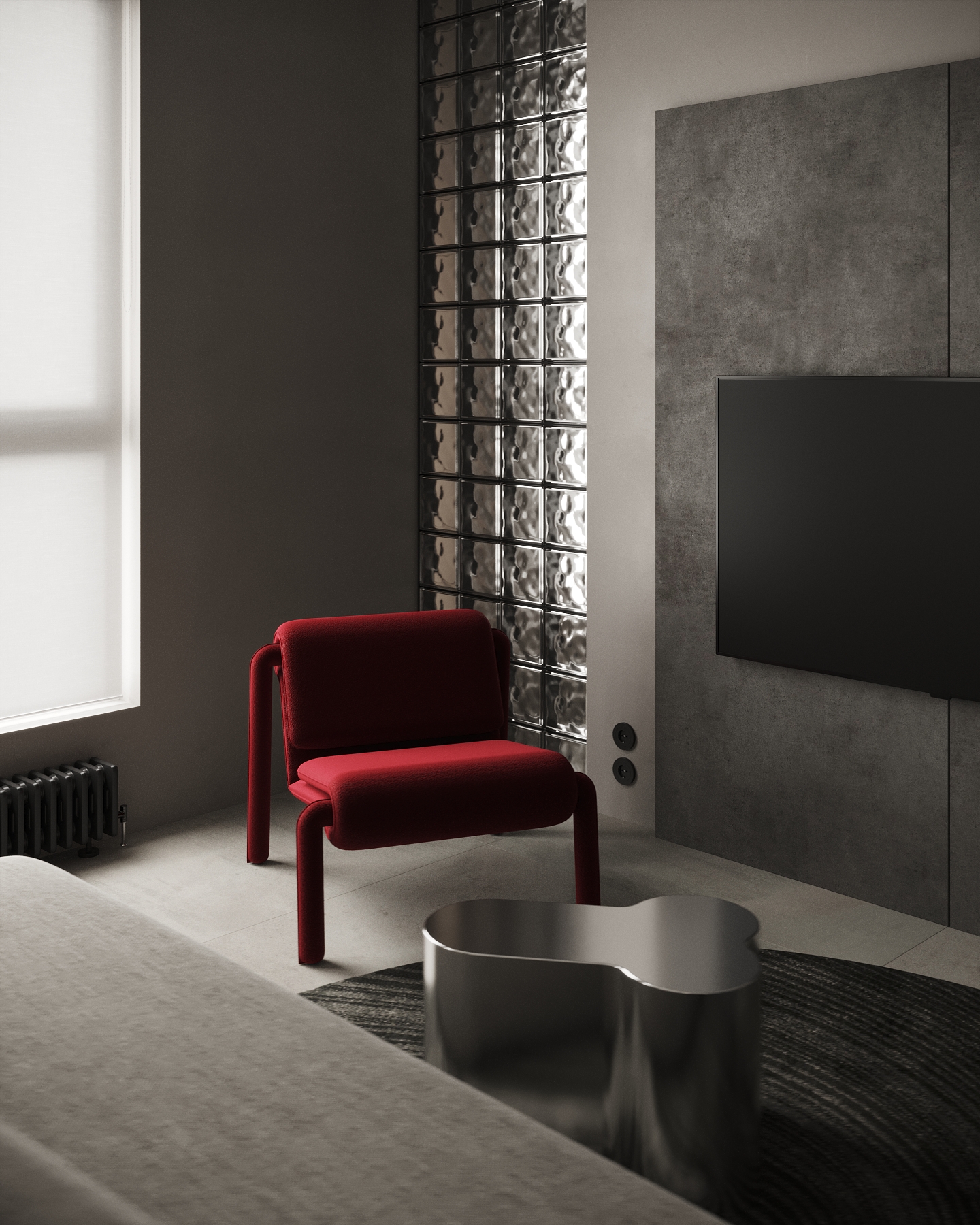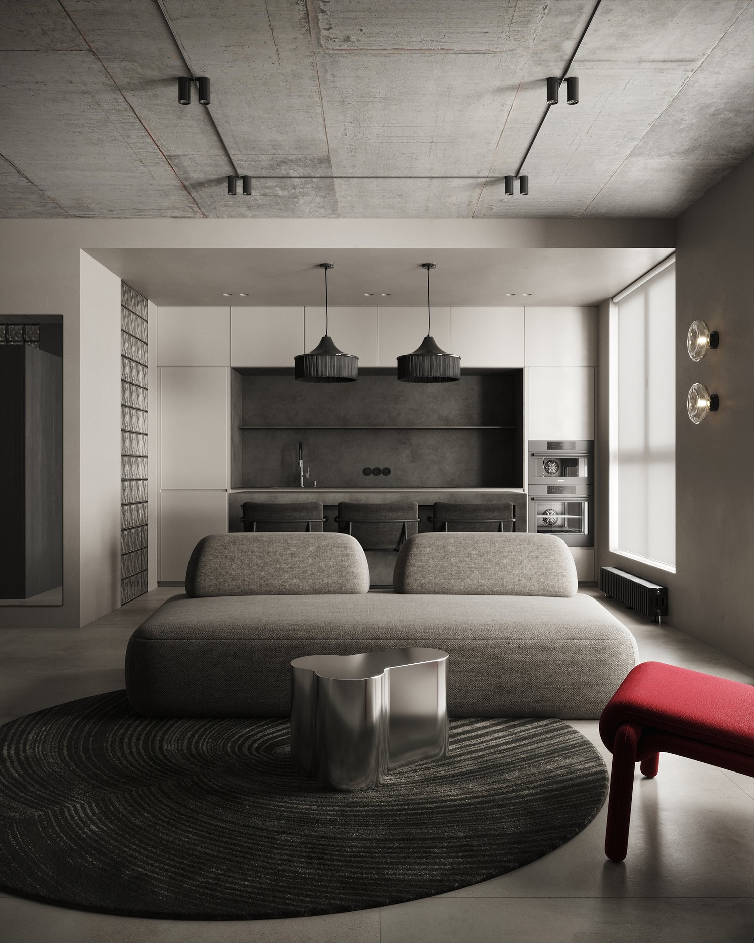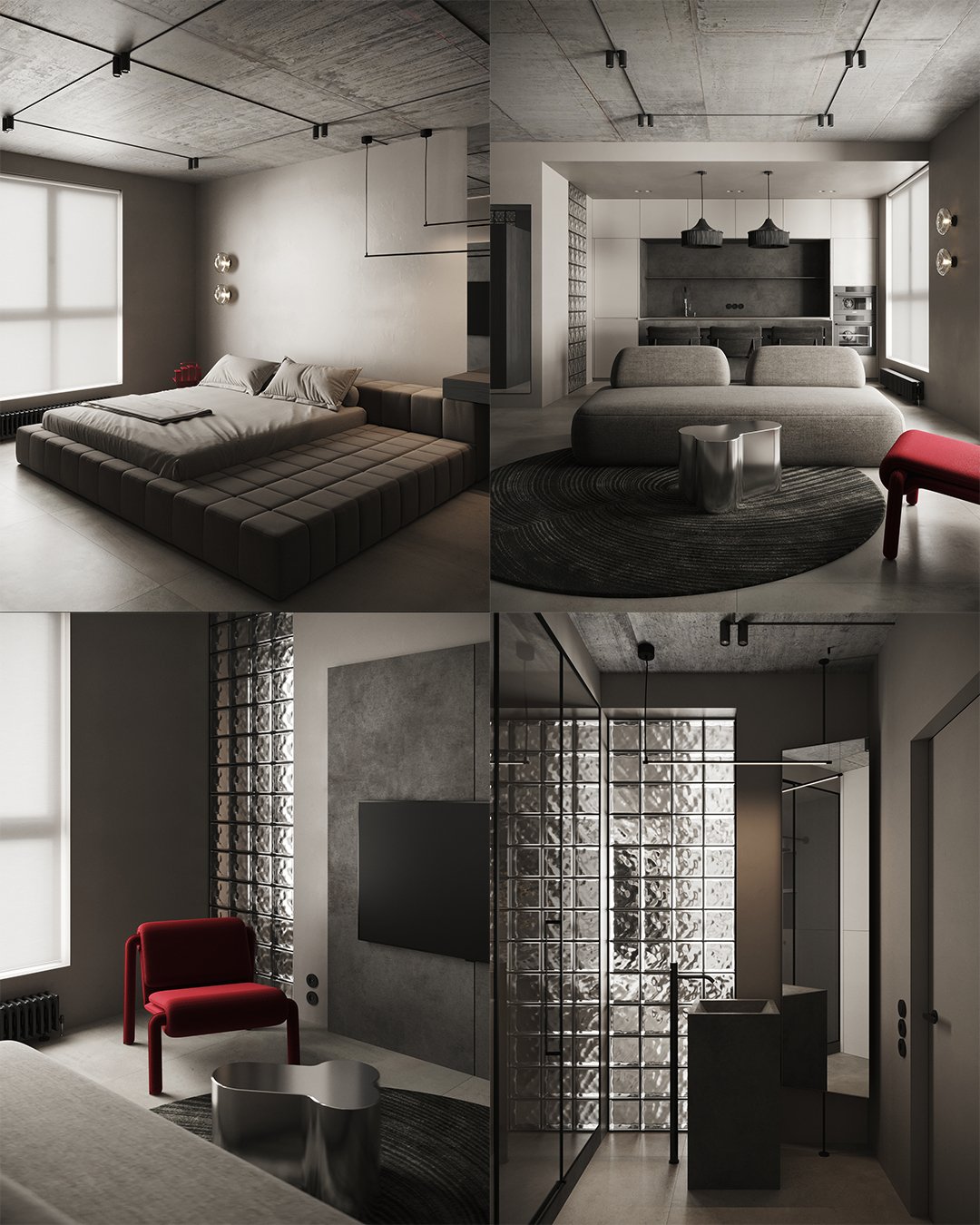 A kitchen, living room, bedroom and bathroom are created in one 3D scene!