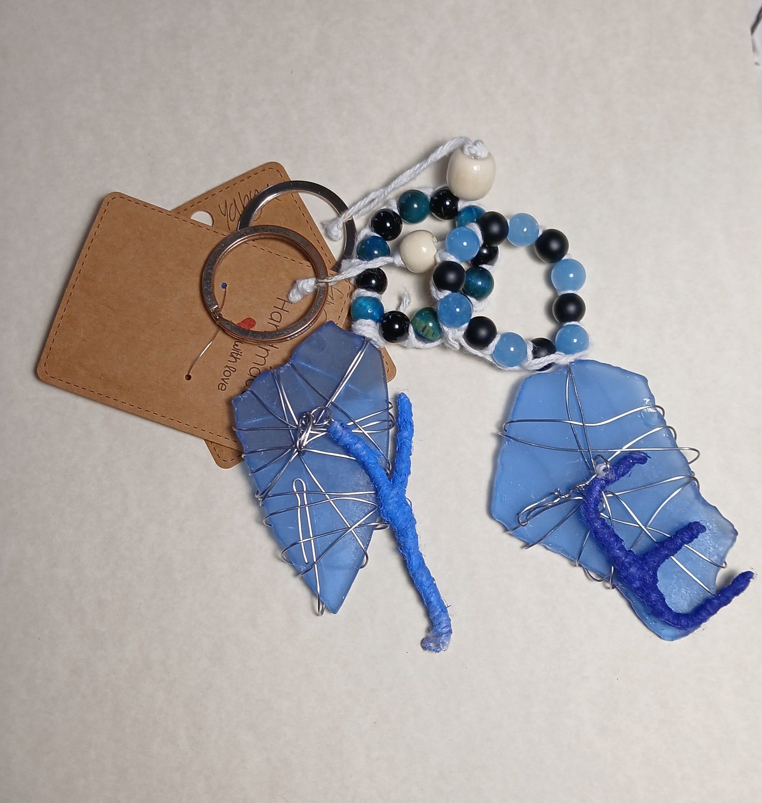 Includes 1 custom yarn letter charm, 1 seaglass charm and 1 lifebuoy charm