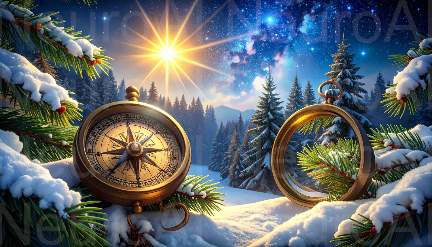 Winter adventure awaits with compass and starburst