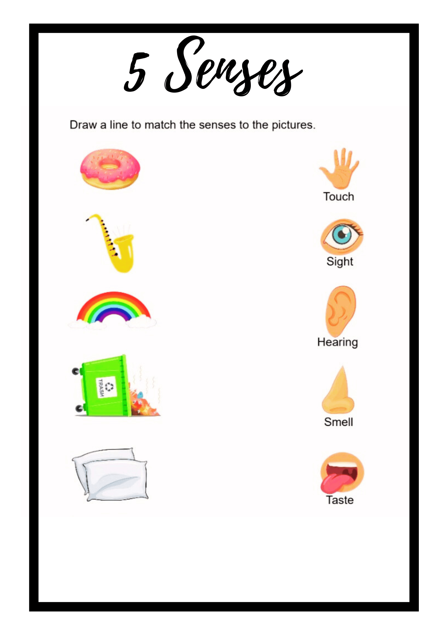 5 senses worksheet for kids