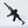 Stock is also foldable, bolt and charging handle movable.