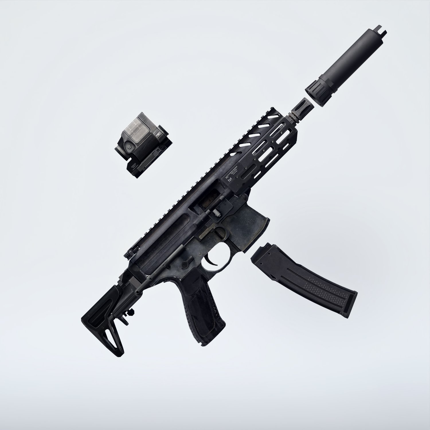 One of the coolest submachine guns, rigged and converted for use with DAZ. Trigger, safety, bolt, stock, etc also rigged for more realistic pictures. Includes a red dot sight and a silencer, for various porpoises and pictures.