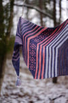 Capturing the shifting colors and textures of the changing seasons, Glimpses of Winter is designed to maximize your favorite assortment of mini-skeins. The shawl is asymmetrical, worked from one corner into a kite shape. Stripes of half-double crochet and lace are juxtaposed with snowflake motifs in tapestry crochet, highlighting the color changes. The simple stitches are the perfect canvas for bright pops of color or a sophisticated palette of neutrals.