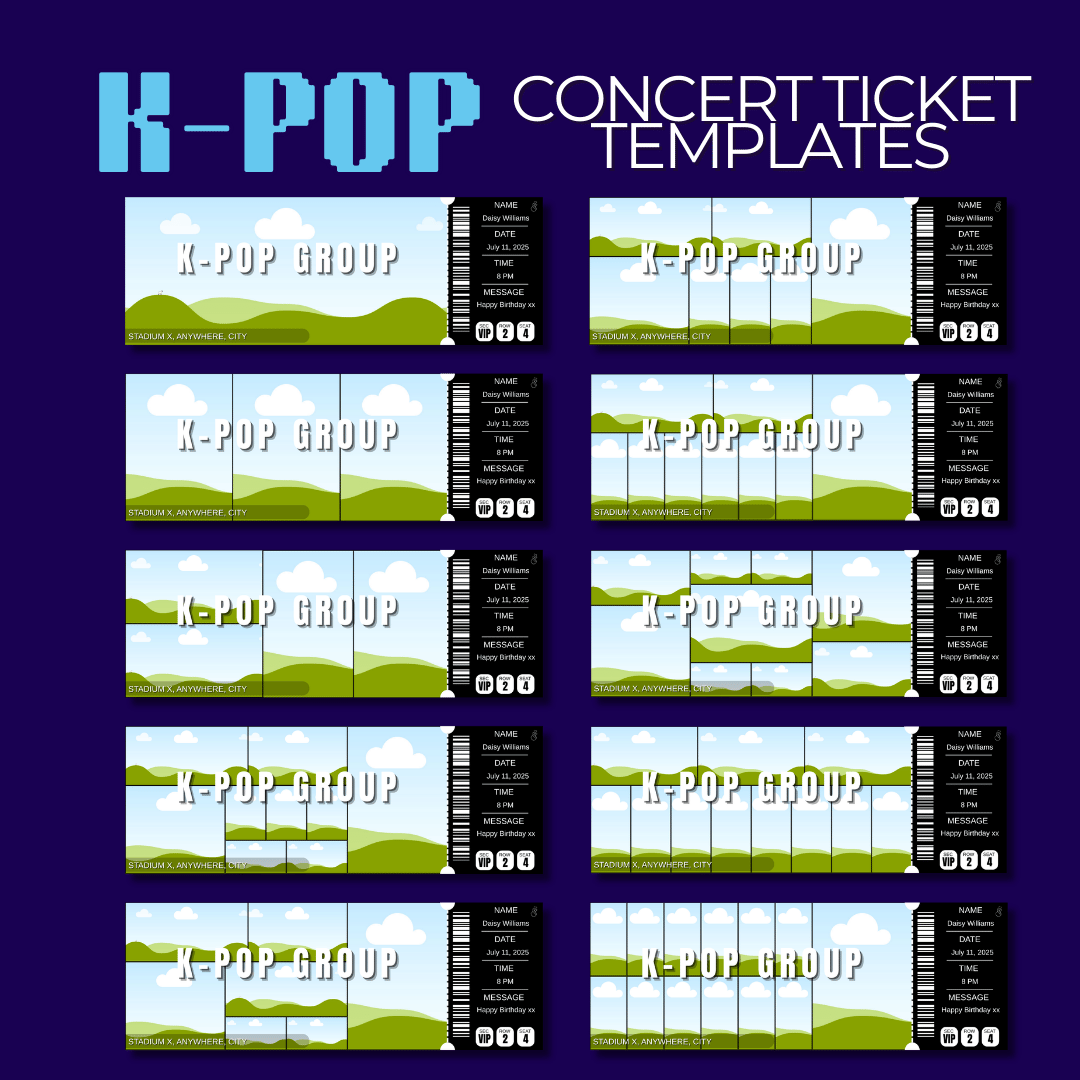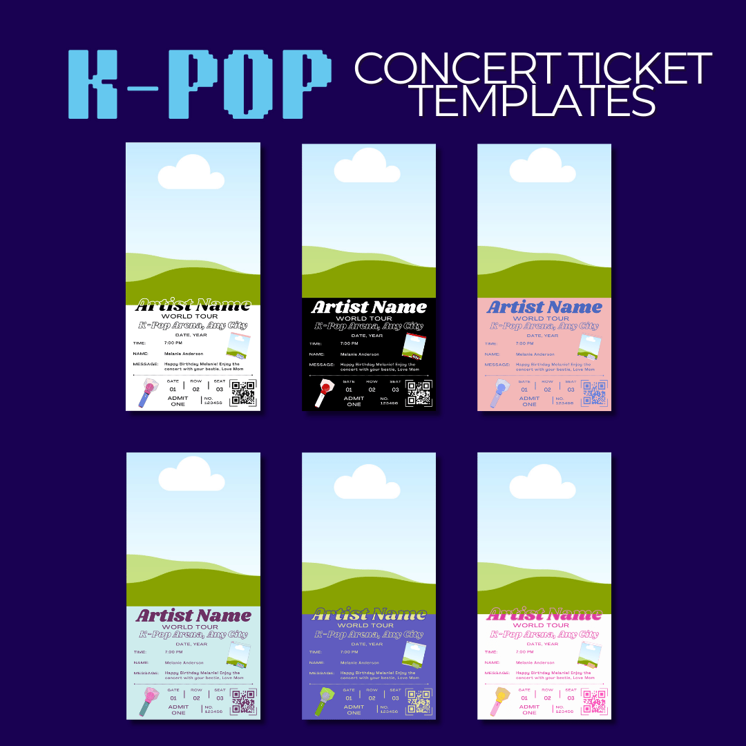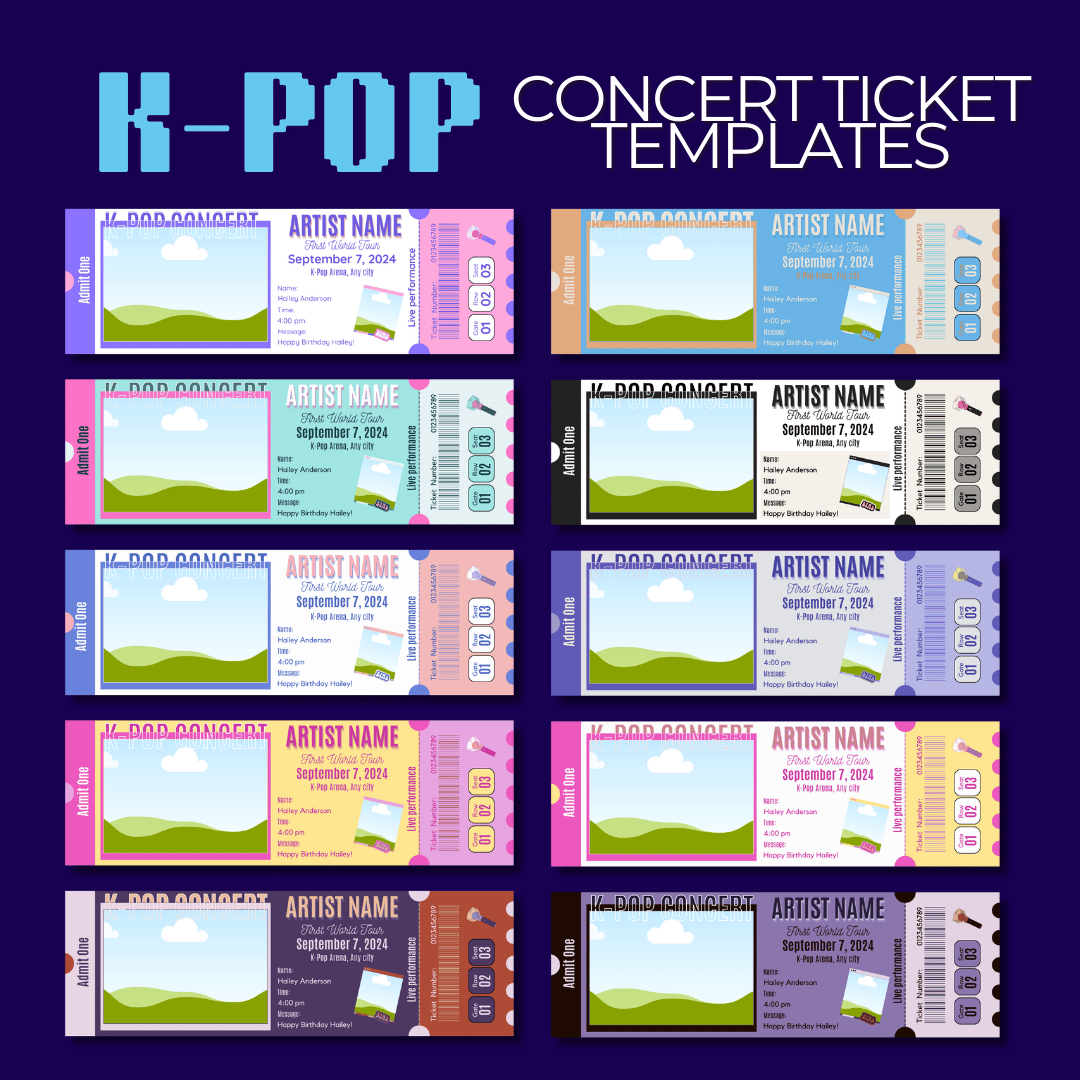 * K-Pop Concert Ticket Templates (Canva) 4x