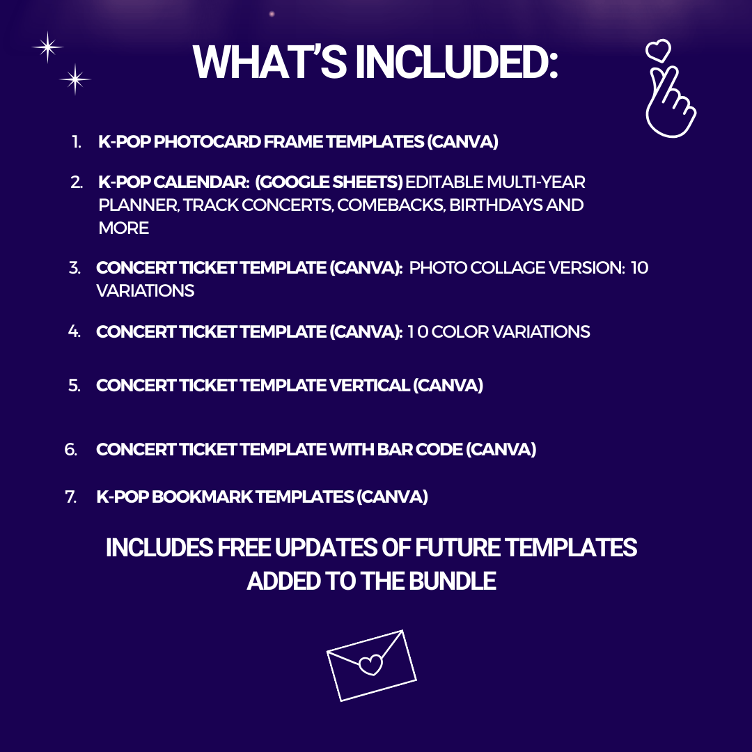 This Ultimate K-Pop Templates Bundle gives you everything you need to create cute, professional-looking concert printables in minutes — even if you’re not a designer.