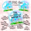 Mother’s Day design featuring 1-10 handprints. Text files including to include, Mum, Mummy, Mother, Mom, Nanny, Nannie, Grandmother, Great-Grandmother