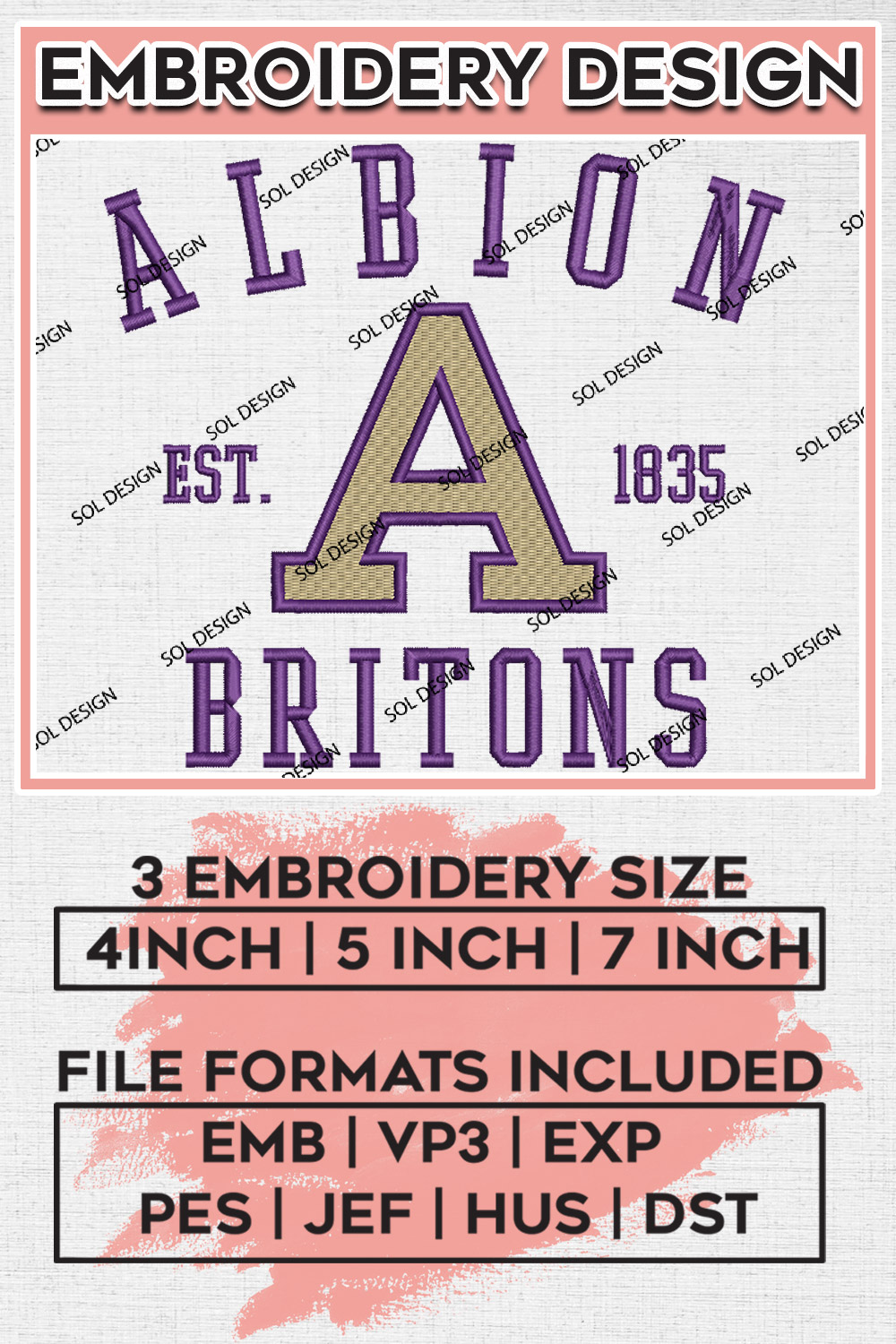 NCAA Albion Britons College Football Team Est 1835 Logo Embroidery Designs, Ncaa Embroidery Files, NCAA Albion Britons Team Logo Embroidery, Game Day Machine Embroidery Design, Digital Download