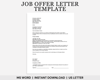 Job Offer Letter Template, Job Offer Template, Employment Offer Letter, Employment Contract, Employment Letter, New Hire Template, HR Form