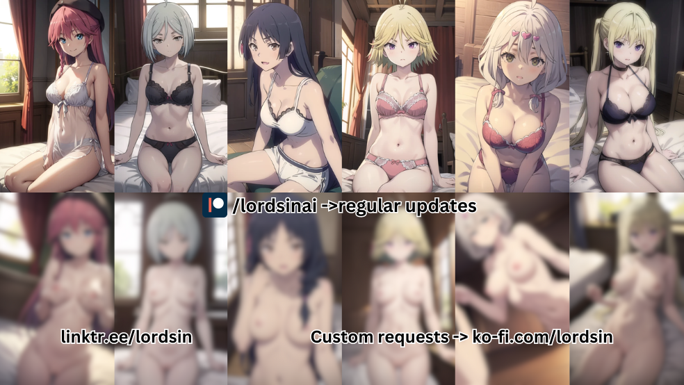 5 SFWs and 5 NSFWs of 6 characters (lilith, arin, akio, mira, yui, lise) from Trinity Seven