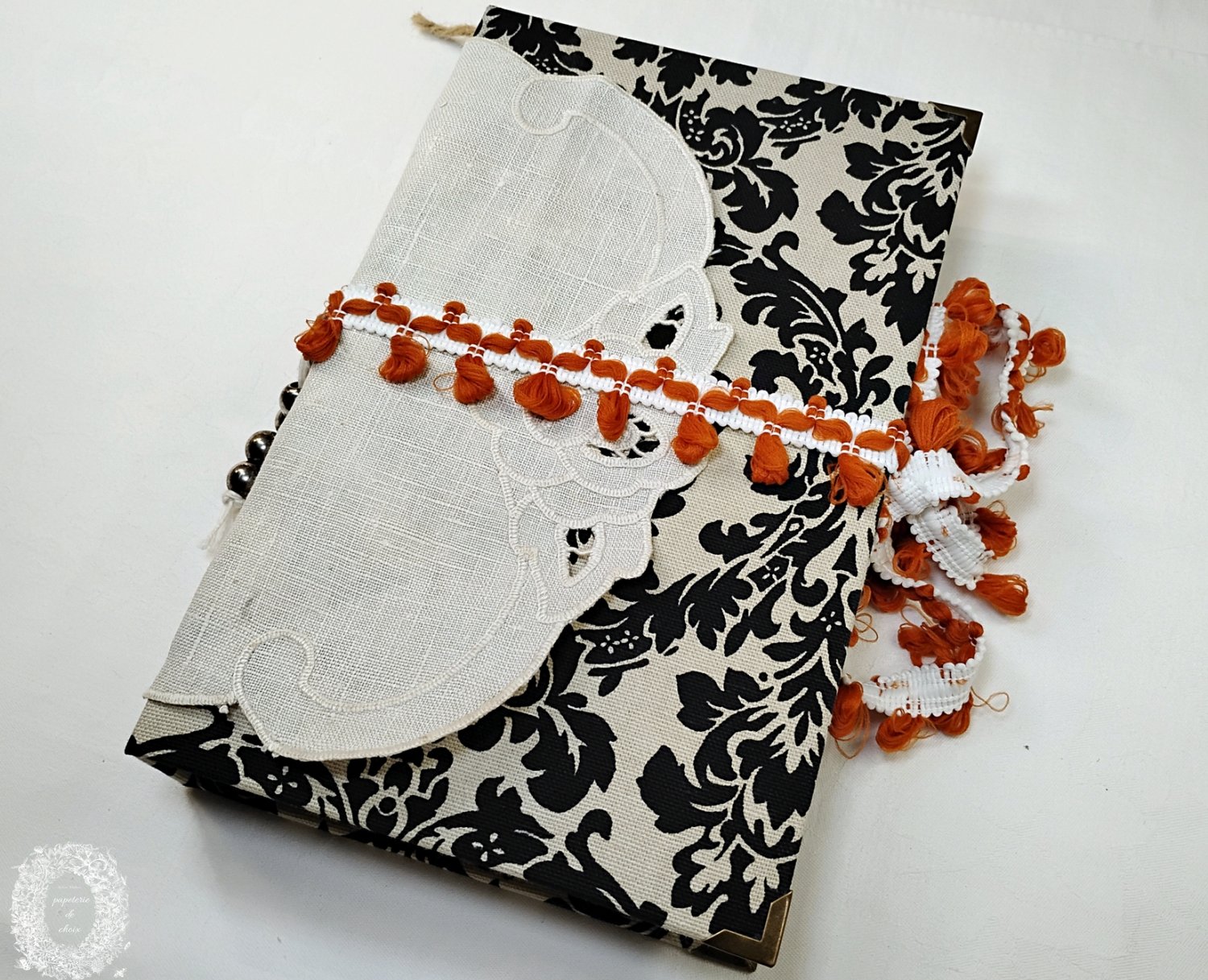 Vintage Travels is a fabric-covered journal that has 92 writing pages, 4 tags, 27 pockets/tucks, 50 journaling cards,1 special ephemera, 5 signatures, measures 9.5 inches tall x 6 inches wide x 1.75 inches thick, and is a comglomerate of images from three different books. It has photographic images from back in the day when travel as entertainment was in its infancy.