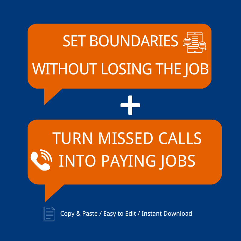 These ready-to-send text messages help you follow up with missed calls, get the conversation started again, and turn more of those calls into booked jobs — without hiring a receptionist or sitting by the phone all day.Two practical plumber text tools in one bundle.