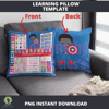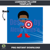 Captain America Learning Pillow Template | Two-Sided Educational Design | Black Boy Superhero | Commercial License for POD Creators
