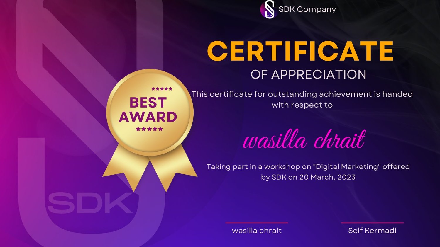 وهي عبارة عن شهادة تقدير أتمنى أن تعجبك ايها الزميل