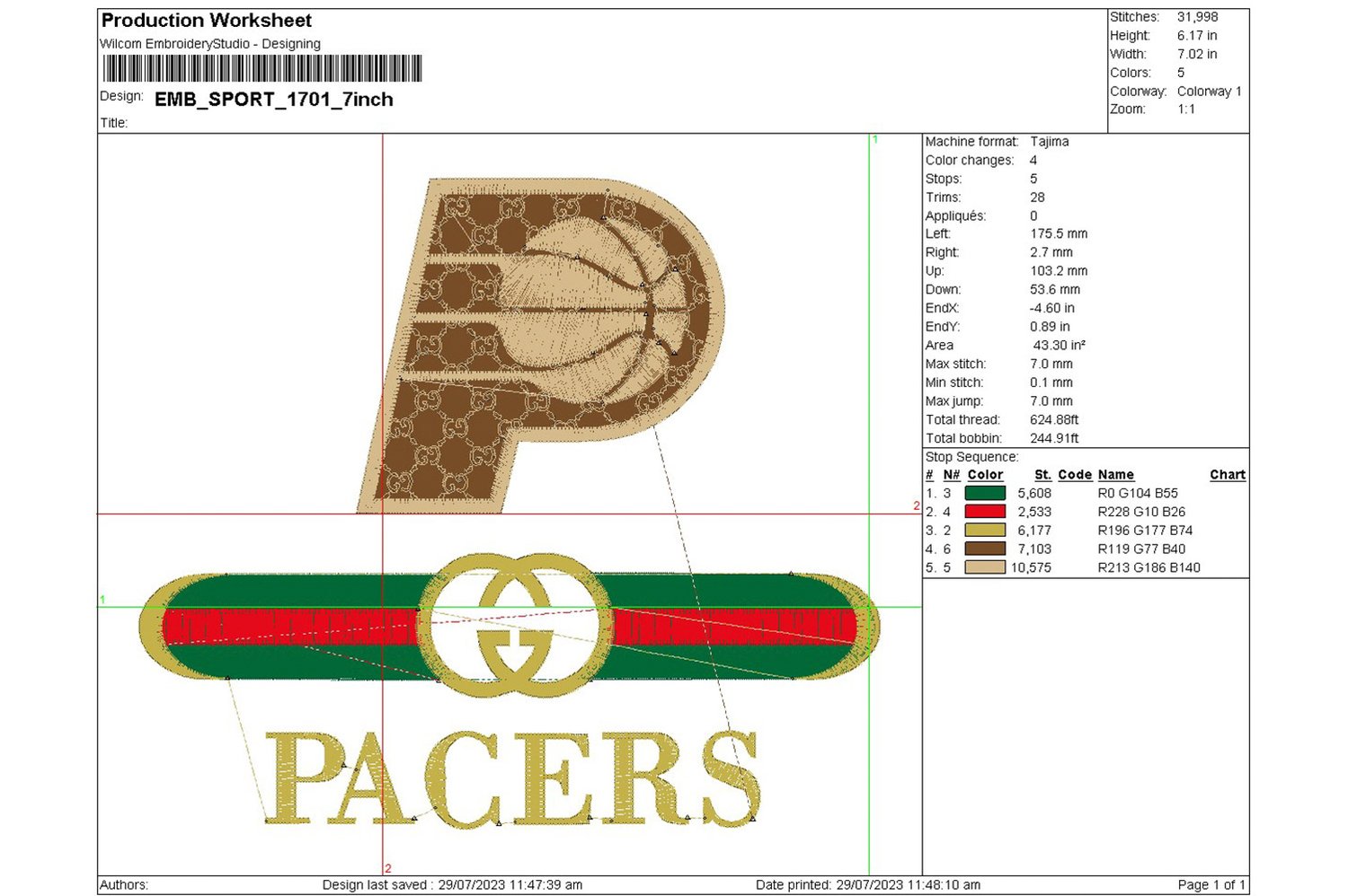 Gu.cci NBA Pacers Basketball Team Embroidery Files, NBA Indiana Pacer Team Embroidery Designs, NBA Teams, Machine embroidery Digital Download
