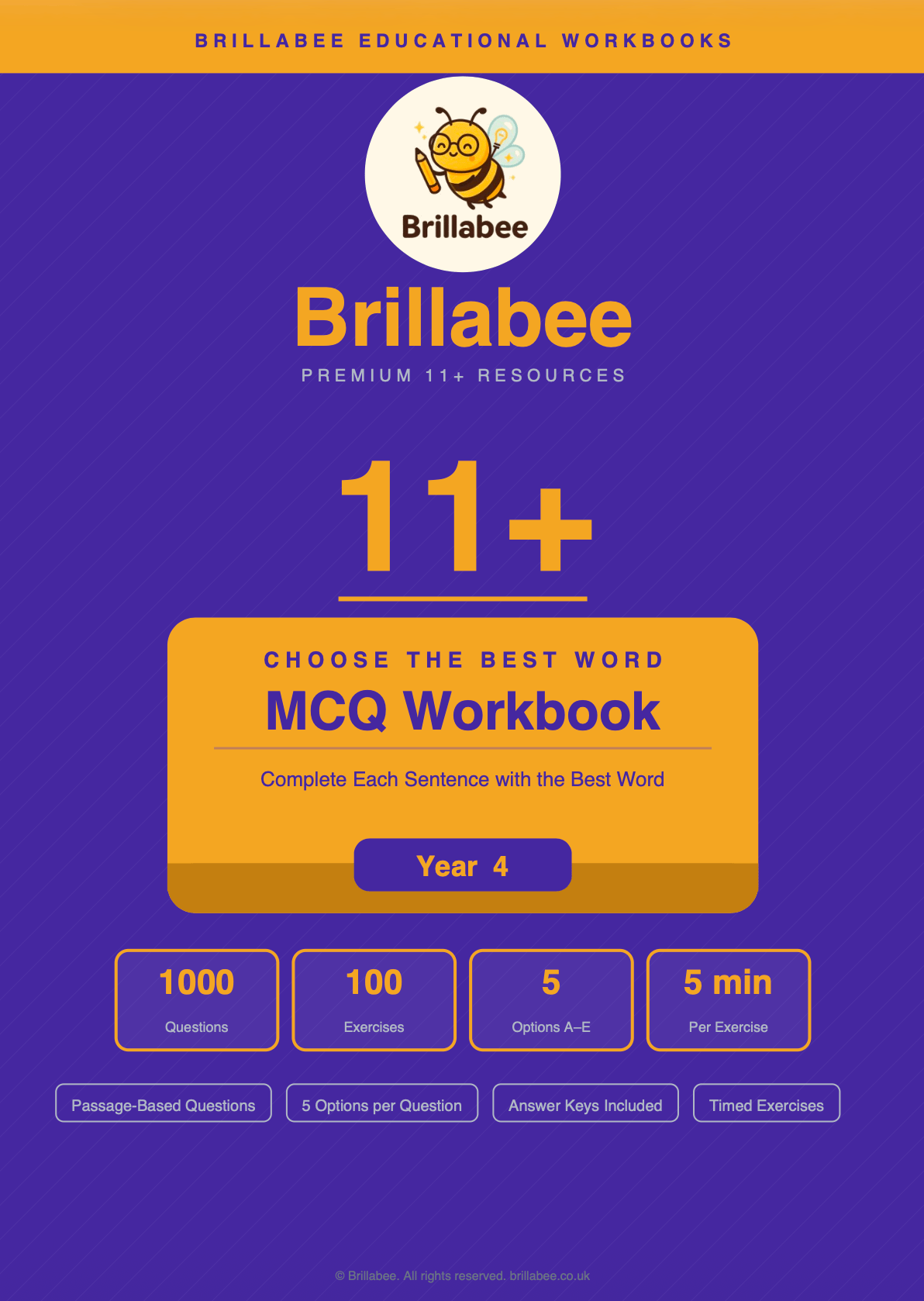Brillabee 11+ Choose the Best Word — MCQ Workbook (Year 4)