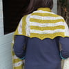 Lastly, stitches are picked up along the remaining side of section one, and worked in stripes once more. This last section is a comfortable knit, as the stripes not only create a pleasing mirrored effect with the initial section, but the repetition of the patterning is so familiar as to become an easy-going knit. The finishing touch is added with a simple edging worked along both long sides of the shawl.
