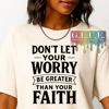Strengthen your spirit and inspire others with this high-quality "Don't Let Your Worry Be Greater Than Your Faith" PNG design. Perfect for faith-based crafters, this bold, uplifting quote is ideal for creating standout t-shirts, mugs, wall art, journaling pages, stickers, tote bags, and more!