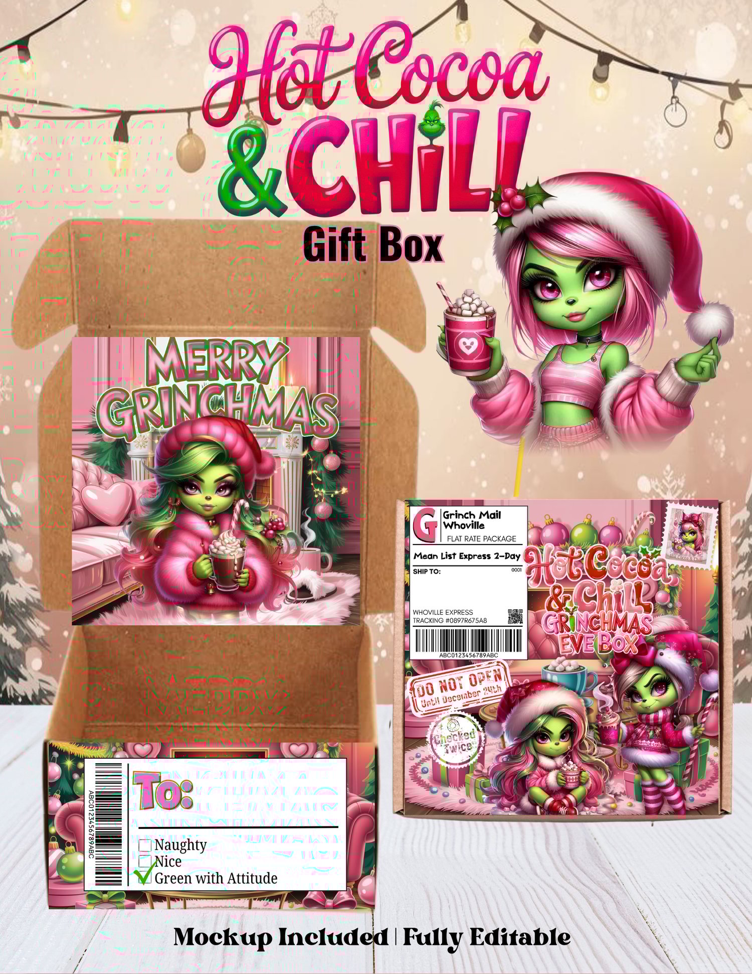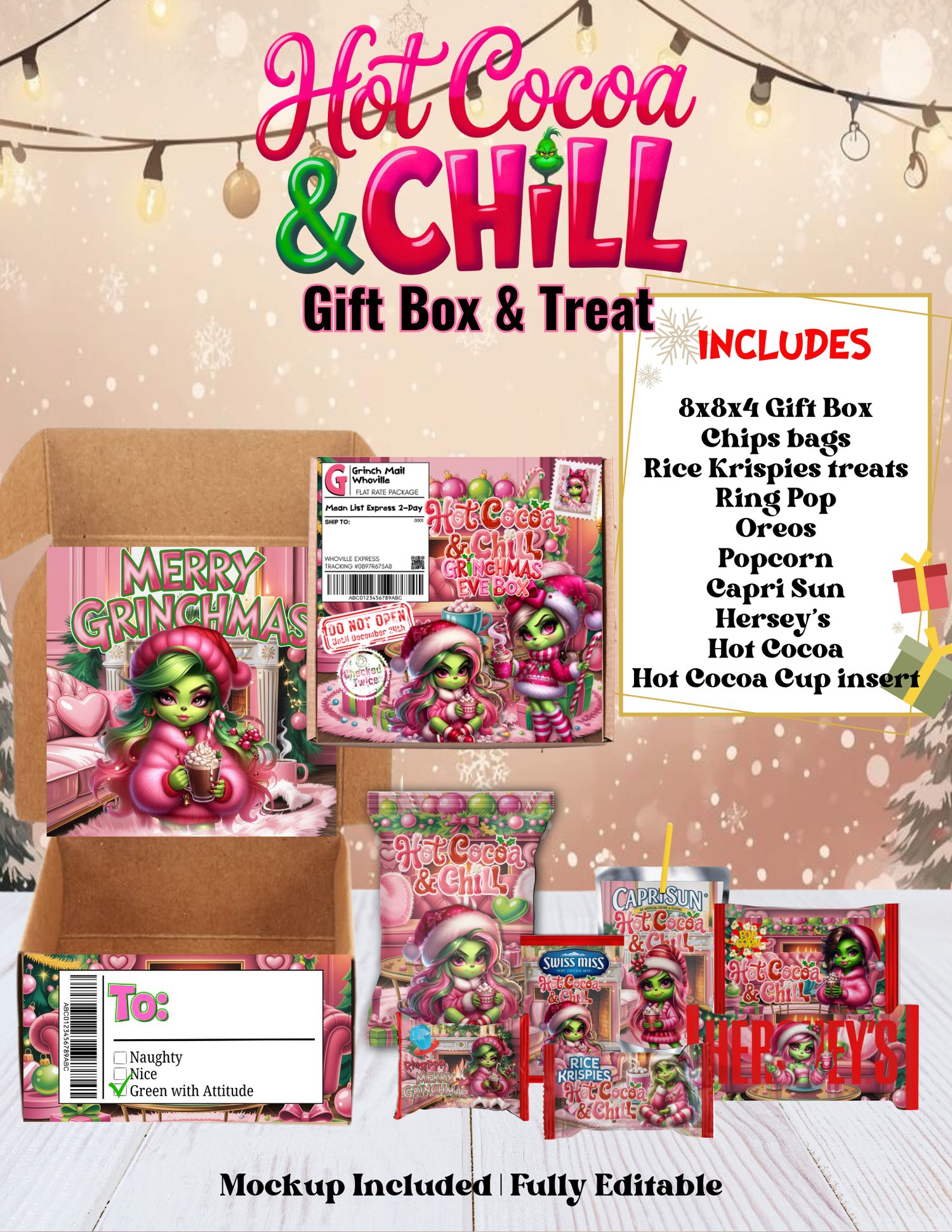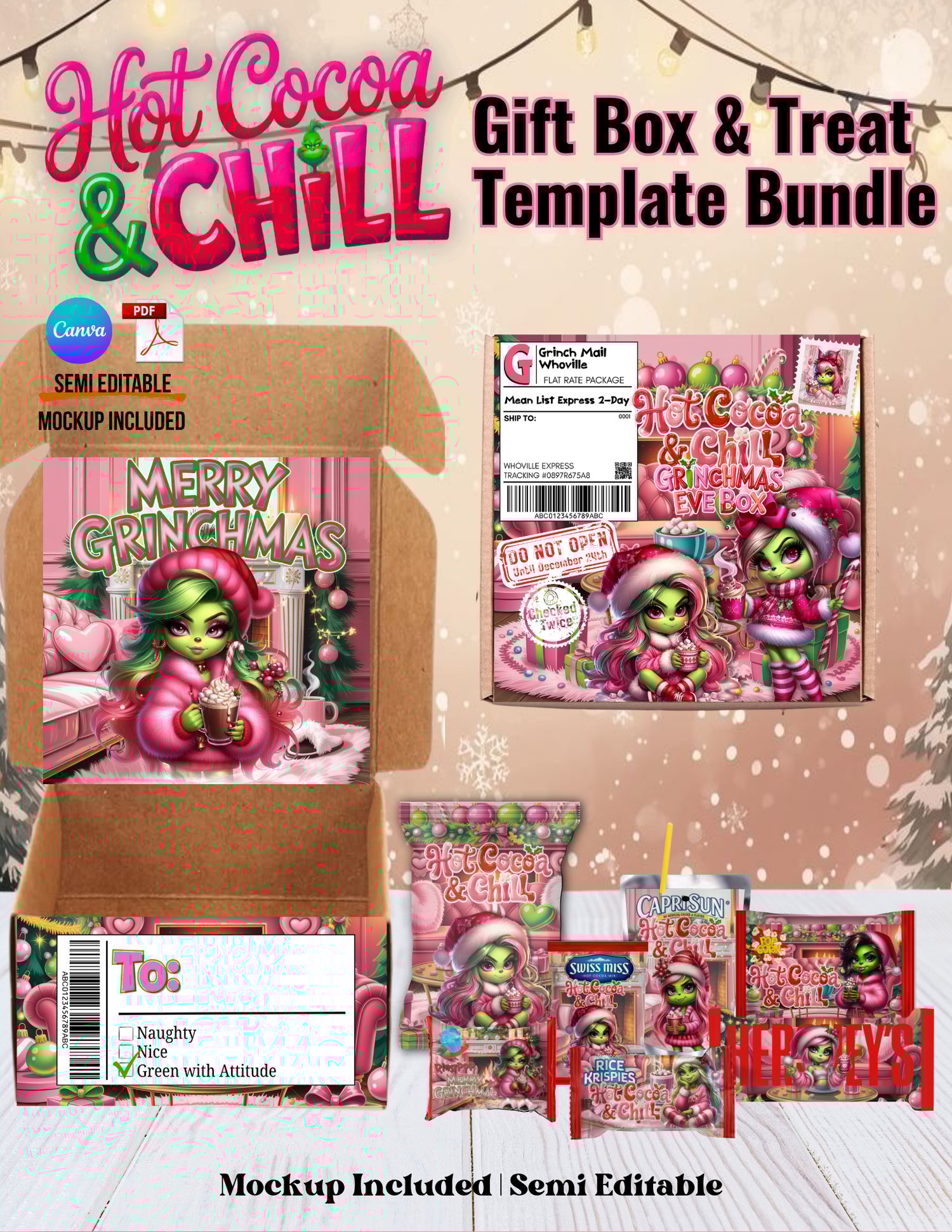 Hot Cocoa & Chill Gift Box & Treat Template Bundle