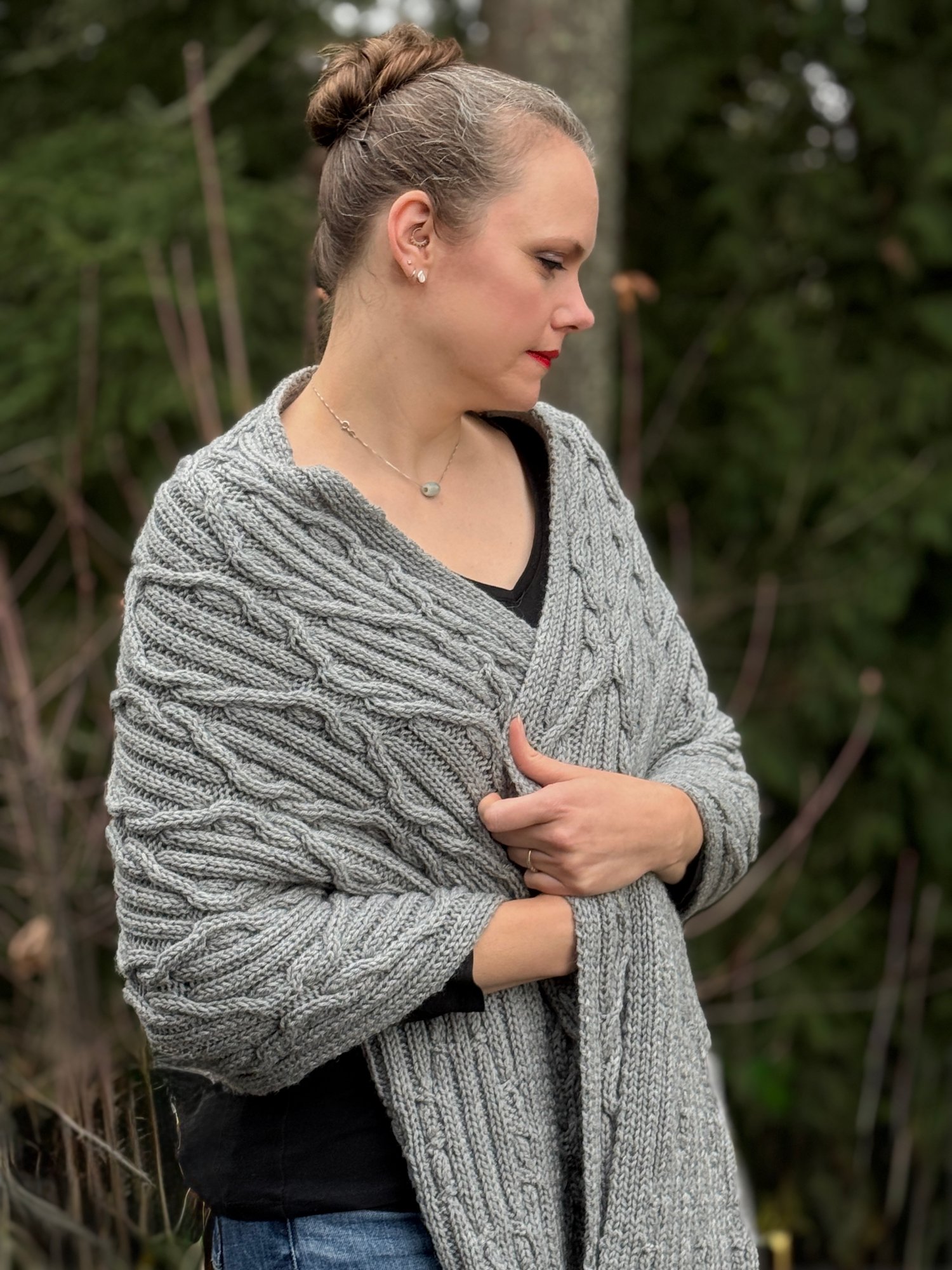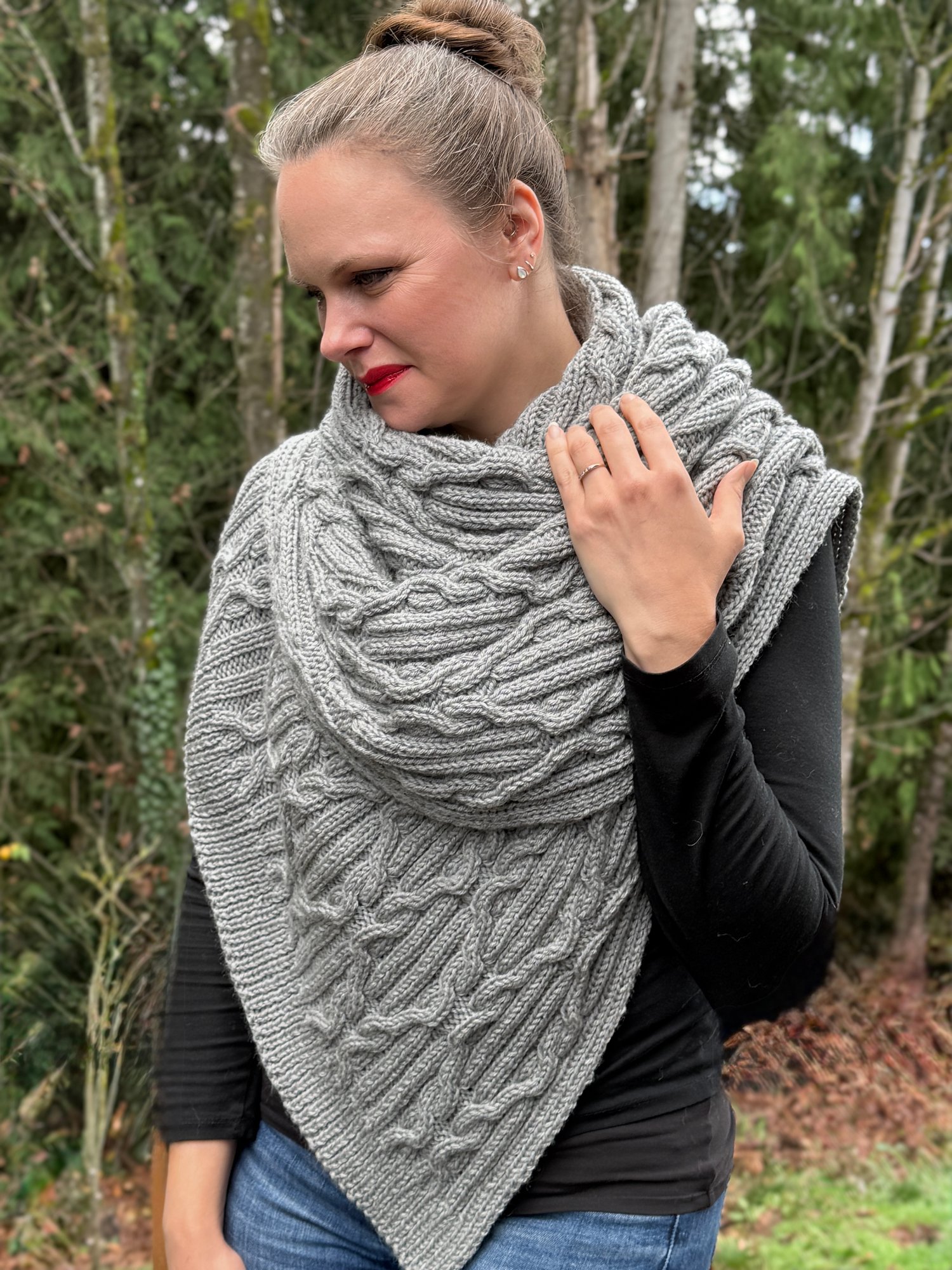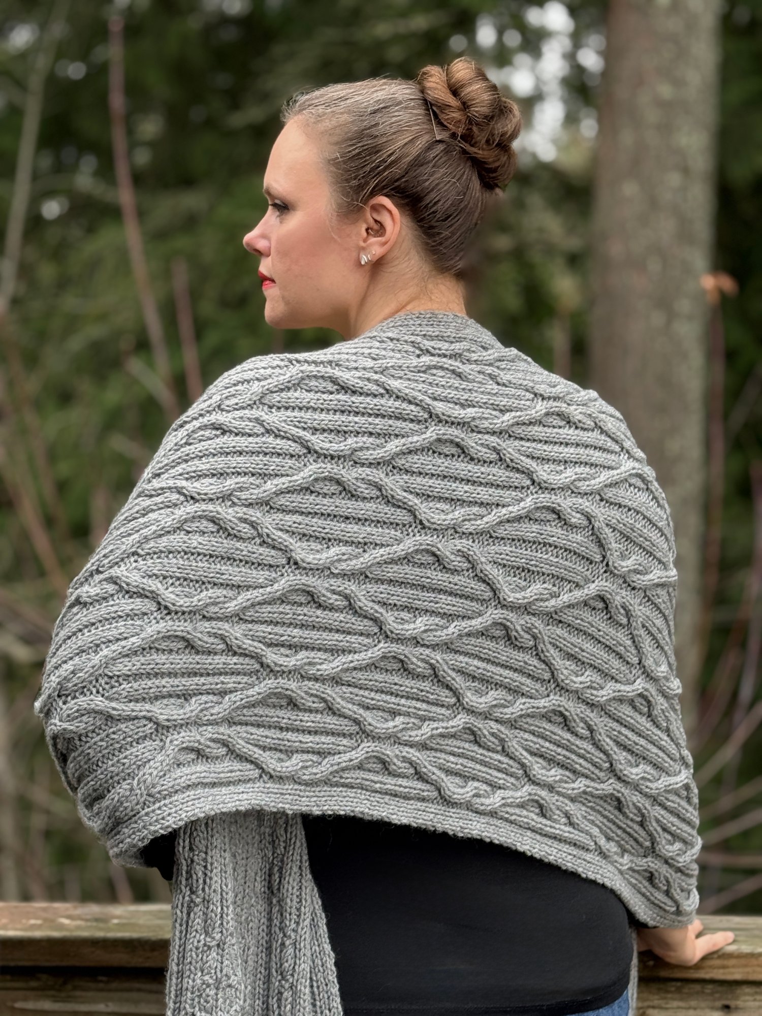 This flowing cable pattern offers a rhythm that is both meditative and engaging to knit, resulting in a gorgeous wrap that is timeless and sophisticated. A generously sized heirloom piece designed for pure comfort. Drape yourself in this cozy texture, and let the Montebello wrap become the soft, luxurious embrace—the cherished piece—you will reach for on every occasion that calls for cozy, contemplative luxury. It is more than a wrap; it is a wearable dream.