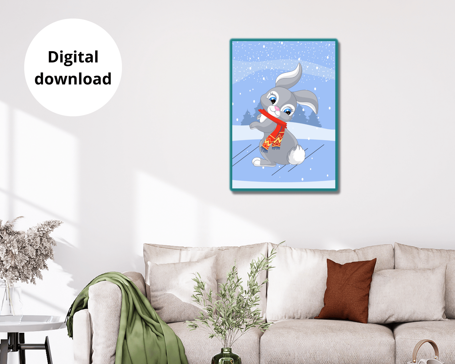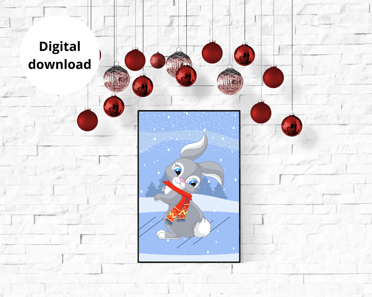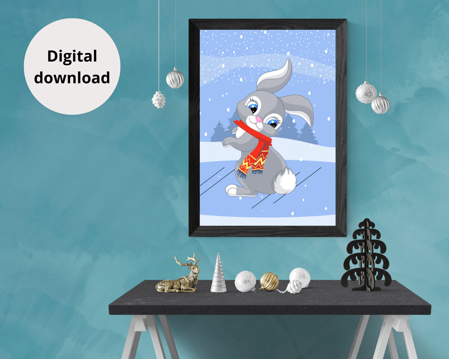 Cute Christmas bunny wall art is a must-have for any house. Enhance your interior design.