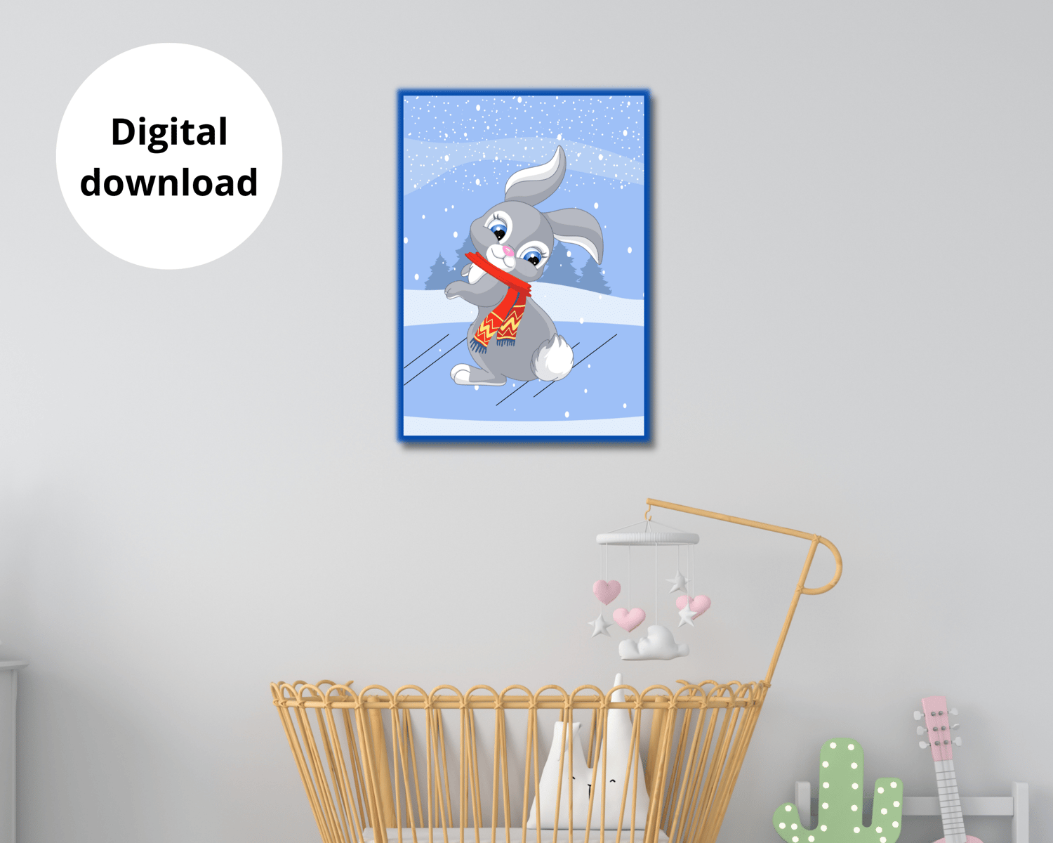 Christmas bunny Wall Art is a perfect gift for loved ones, Cute bunny Print, Animal Print, Kids Room Decor, Best Seller Printable Nursery Decor, Wall art