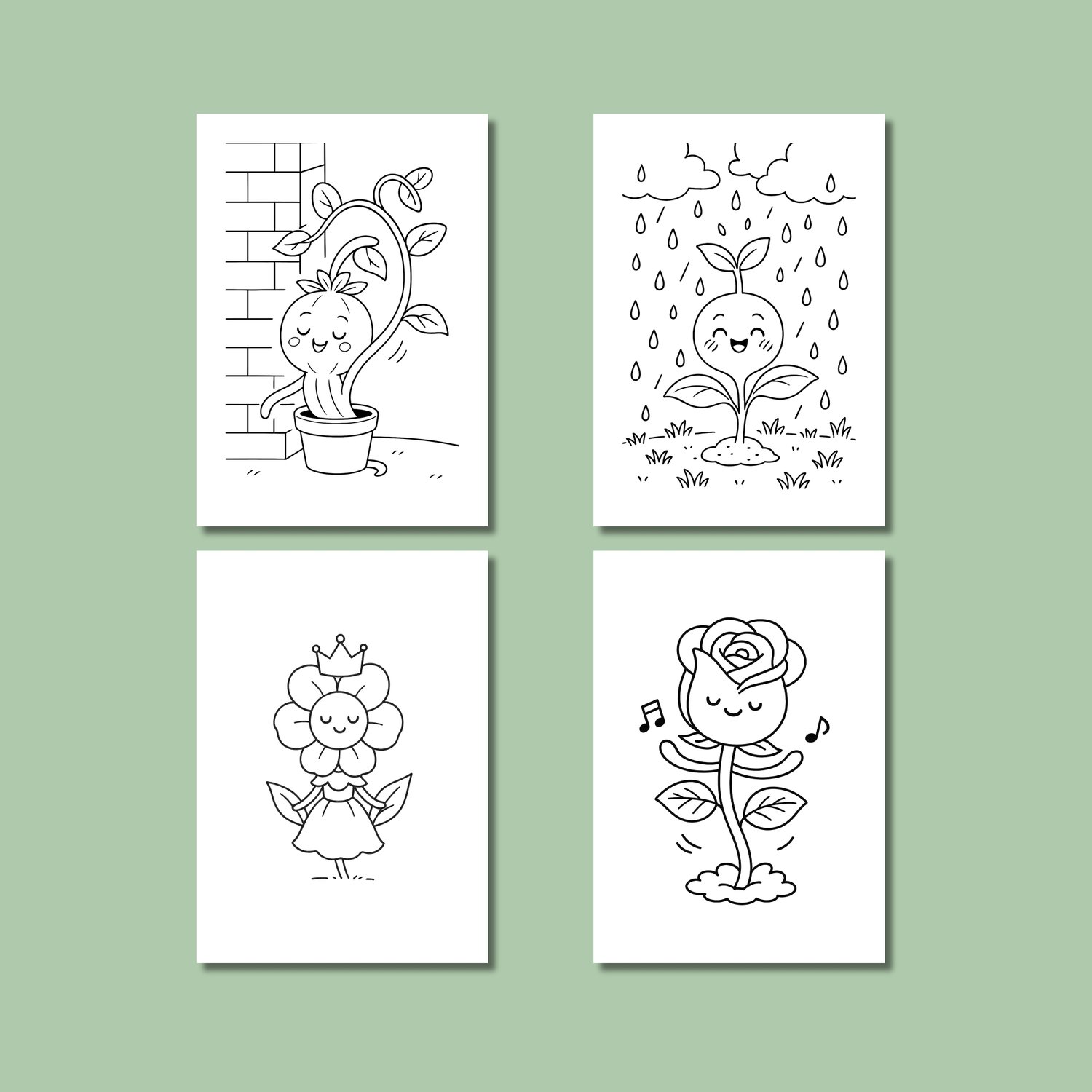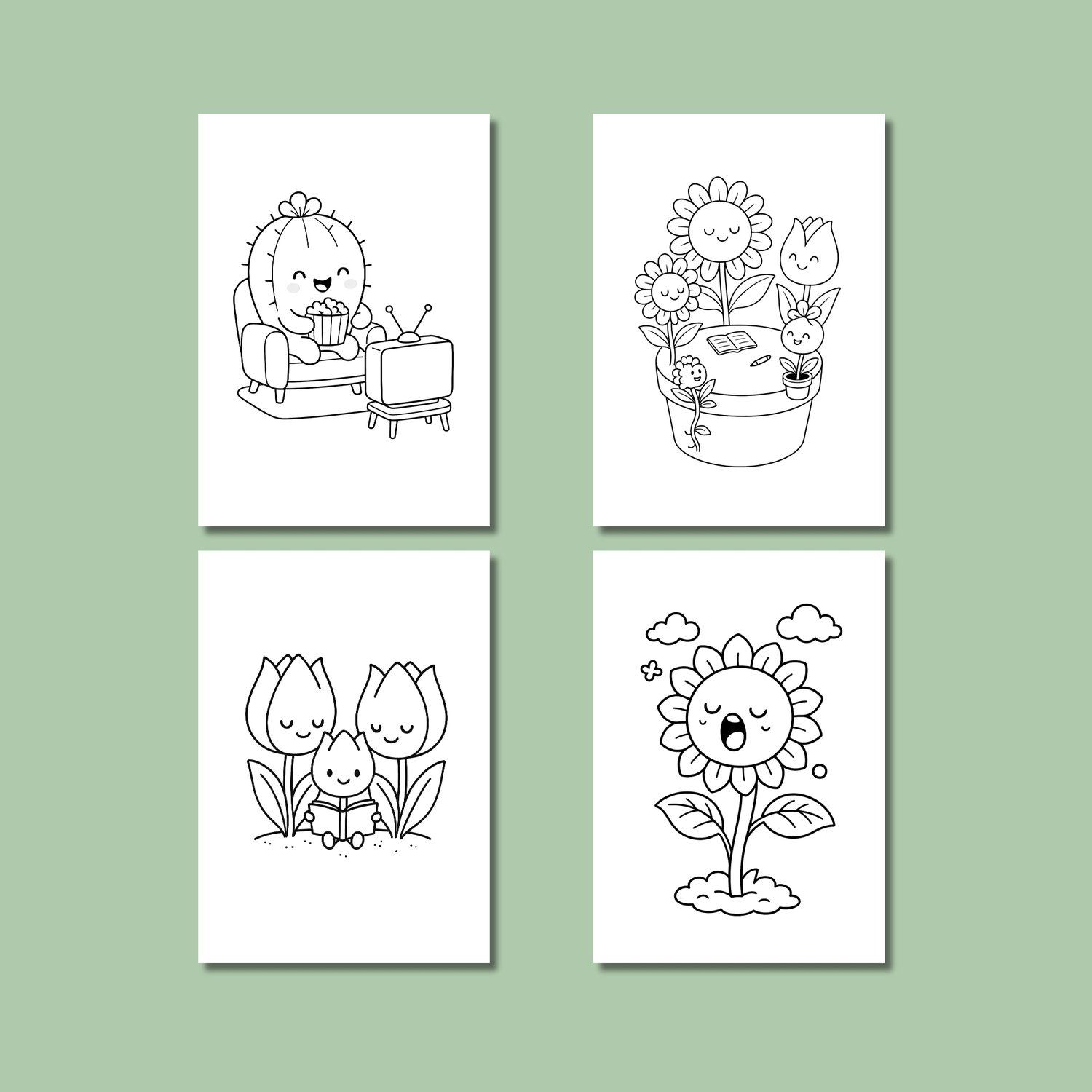 With 16 printable pages, this set is ideal for kids, teens, adults, teachers, and anyone who loves botanical illustrations with a cute twist.